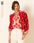 The Annabel Lava Bandana Shirt is a long-sleeve boho essential in a rich red hue. Featuring a relaxed, slouchy fit with a buttoned collar, this shirt blends effortless comfort with laid-back style—perfect for layering or wearing on its own.