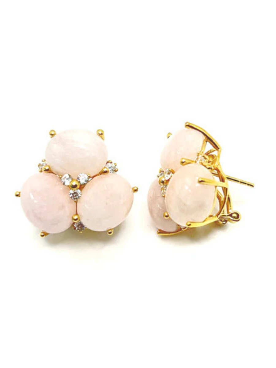 Large Triple Oval Morganite Earrings