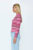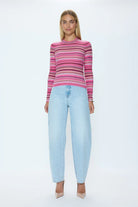 Madison reimagines the classic crewneck with a streamlined silhouette and breathable 100% cotton construction. Balancing softness and structure, playful pink and brown multi stripes add a fresh touch, making it an easy, versatile piece that transitions seamlessly from weekday to weekend.