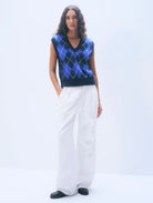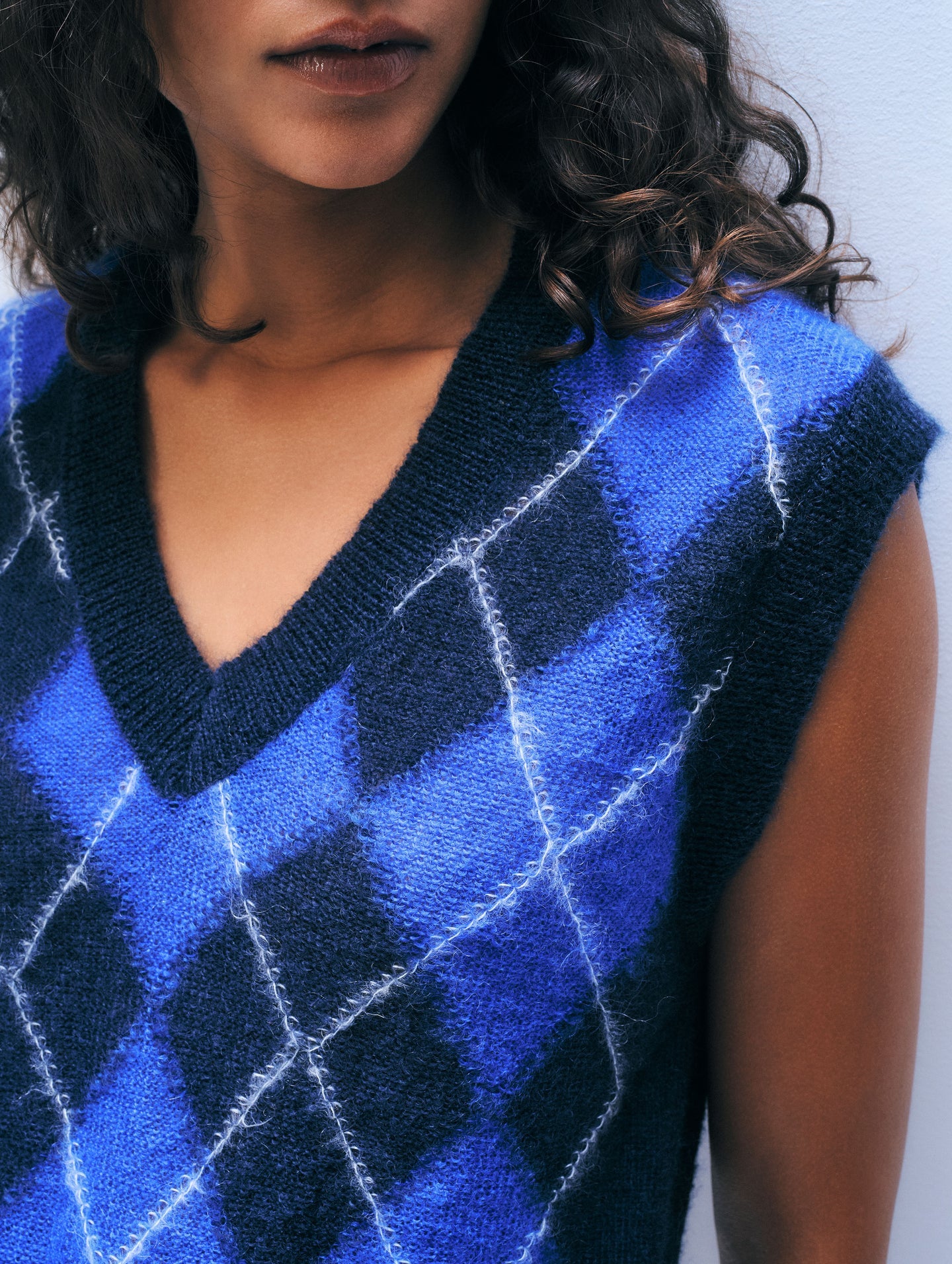 Mohair Luxe Argyle Vest in Blue Argyle