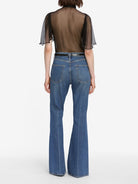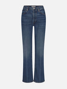 Jeans cut to sit just above the hip, breaking into a relaxed wide-leg flare. Crafted from rigid denim for structure for an authentic vintage-inspired look.