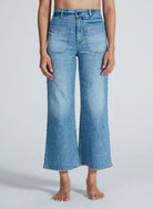 A fresh twist on the classic sailor pant, now featuring a cropped inseam in the Blondie wash. It sits high on the waist with a wide straight leg and cropped fit. Crafted from 10 oz. Japanese stretch denim for the perfect balance of comfort and structure.