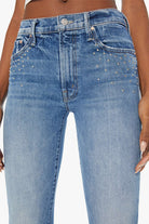 Steel got it. This iconic mid-rise bootcut has a 28.25-inch inseam and a clean hem. Made from semi-rigid SUPERIOR denim, Metal Magic is a mid-blue wash with whiskering, fading, and studs around the pockets.