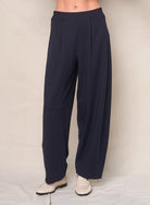 The Luxe Ponte Barrel Trouser combines effortless comfort with modern tailoring. Designed with a relaxed, barrel-leg silhouette, this pull-on style features soft pleating at the front for added shape and ease. Cut from luxe ponte knit, it’s the perfect balance of structure and stretch—ideal for dressing up with a blouse or pairing with sneakers for an elevated off-duty look.