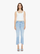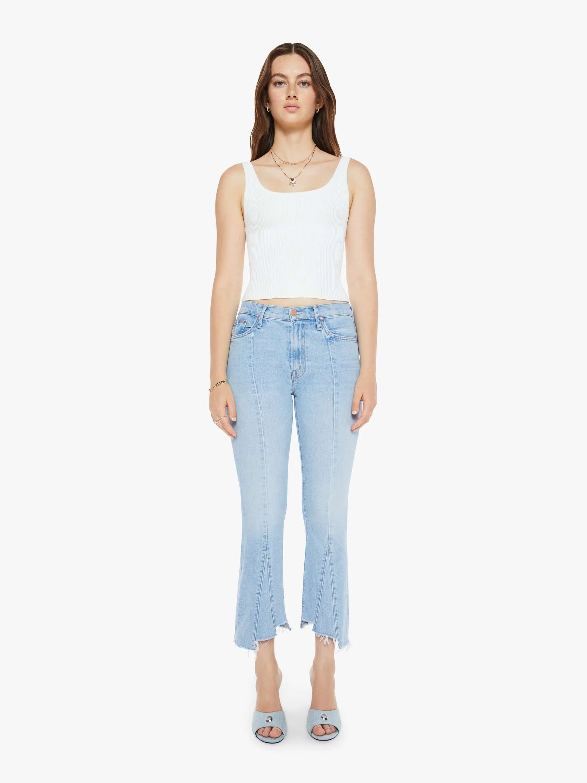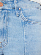 A timeless high-waisted bootcut with a modern twist. This iconic style features seamed detailing down the front, an ankle-length inseam, and a frayed triple step-hem. Crafted from semi-rigid denim, Let's Get It Together comes in a light blue wash with natural fading at the knees.