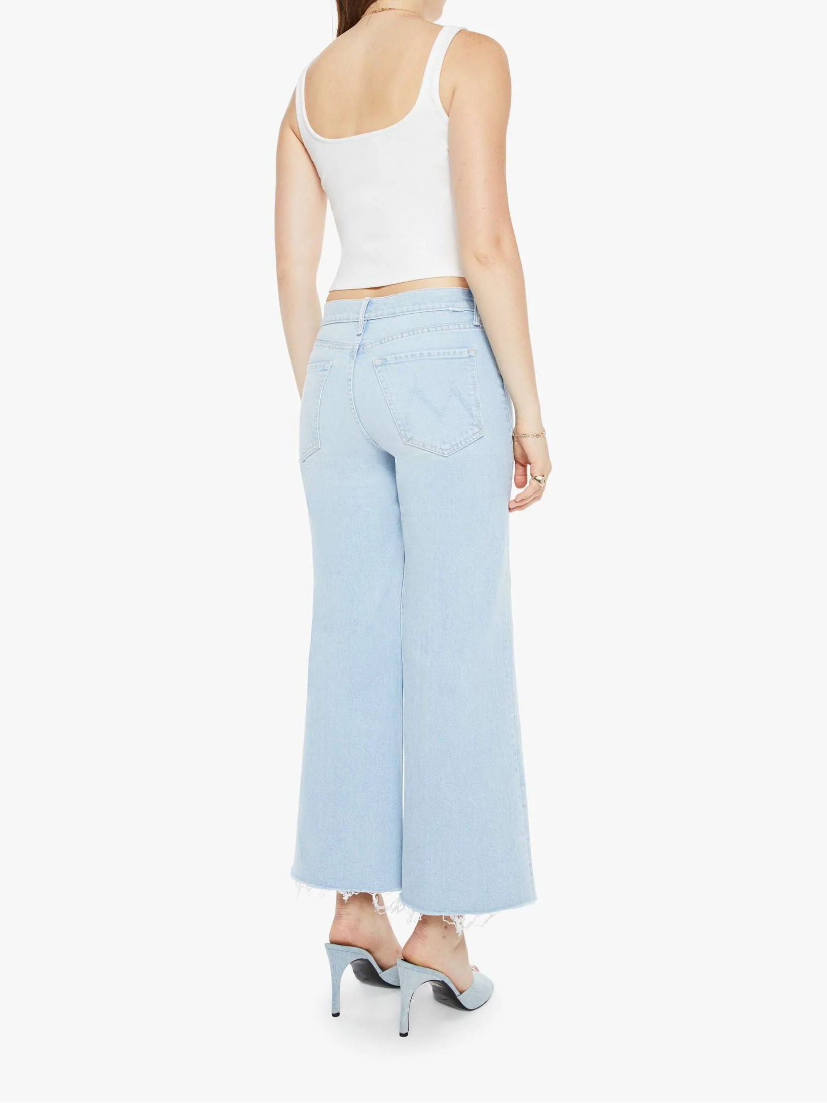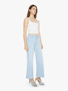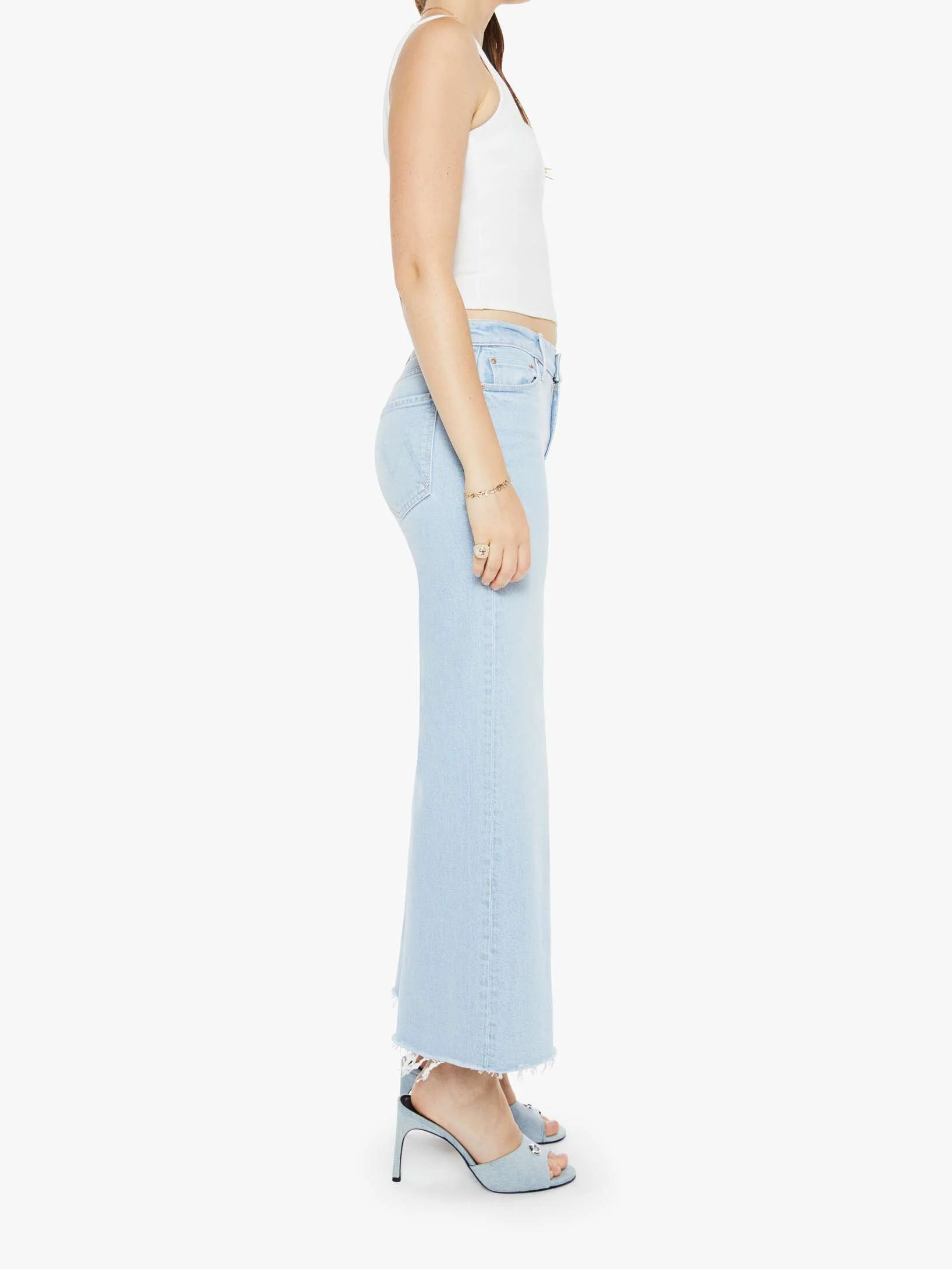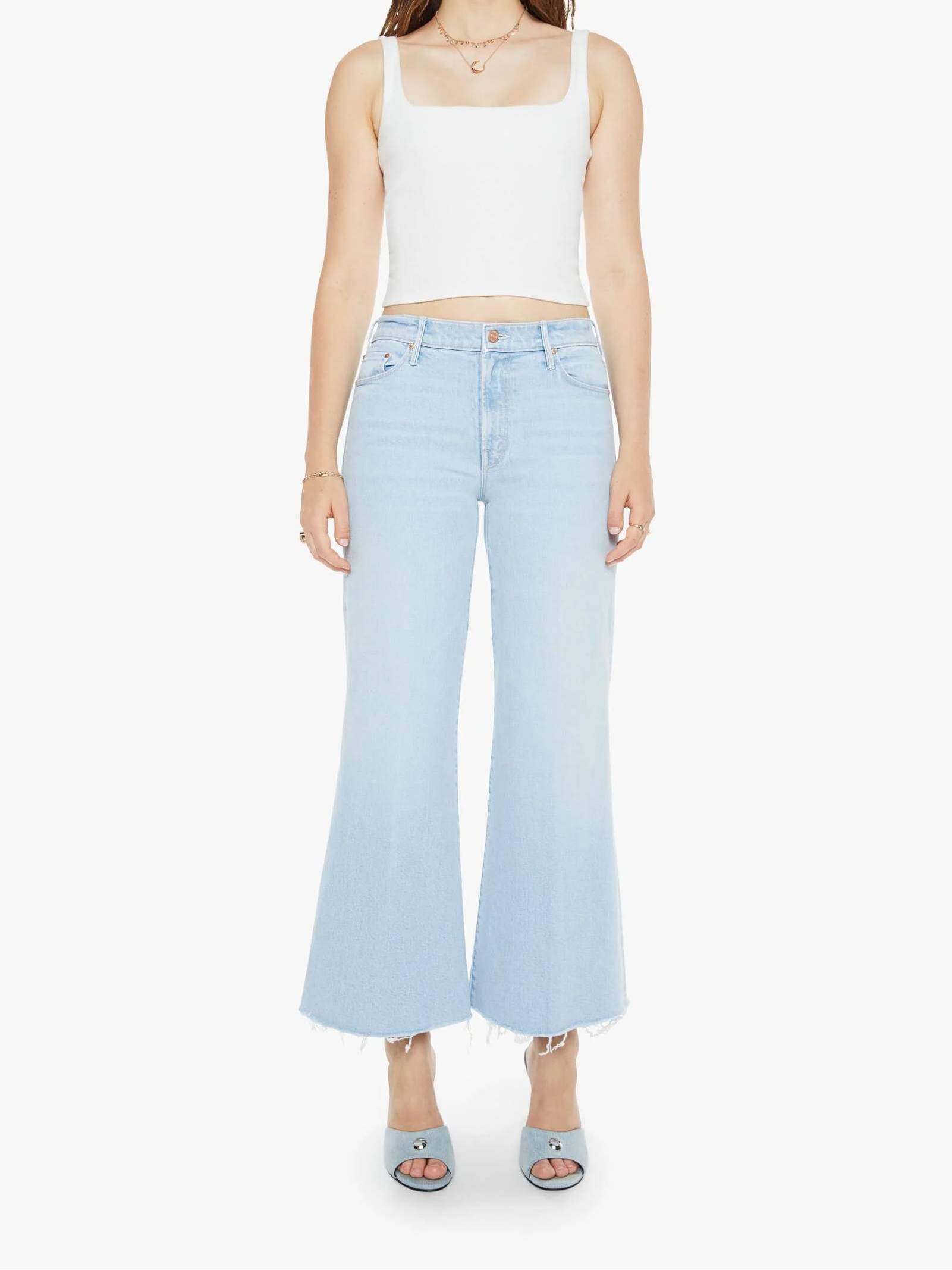 Surf's up. These high-rise jeans feature a flared wide leg and an ankle-length inseam with a frayed hem. Made from denim with a hint of stretch, Cowabunga comes in a light blue wash with gentle fading for a laid-back, vintage vibe.