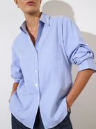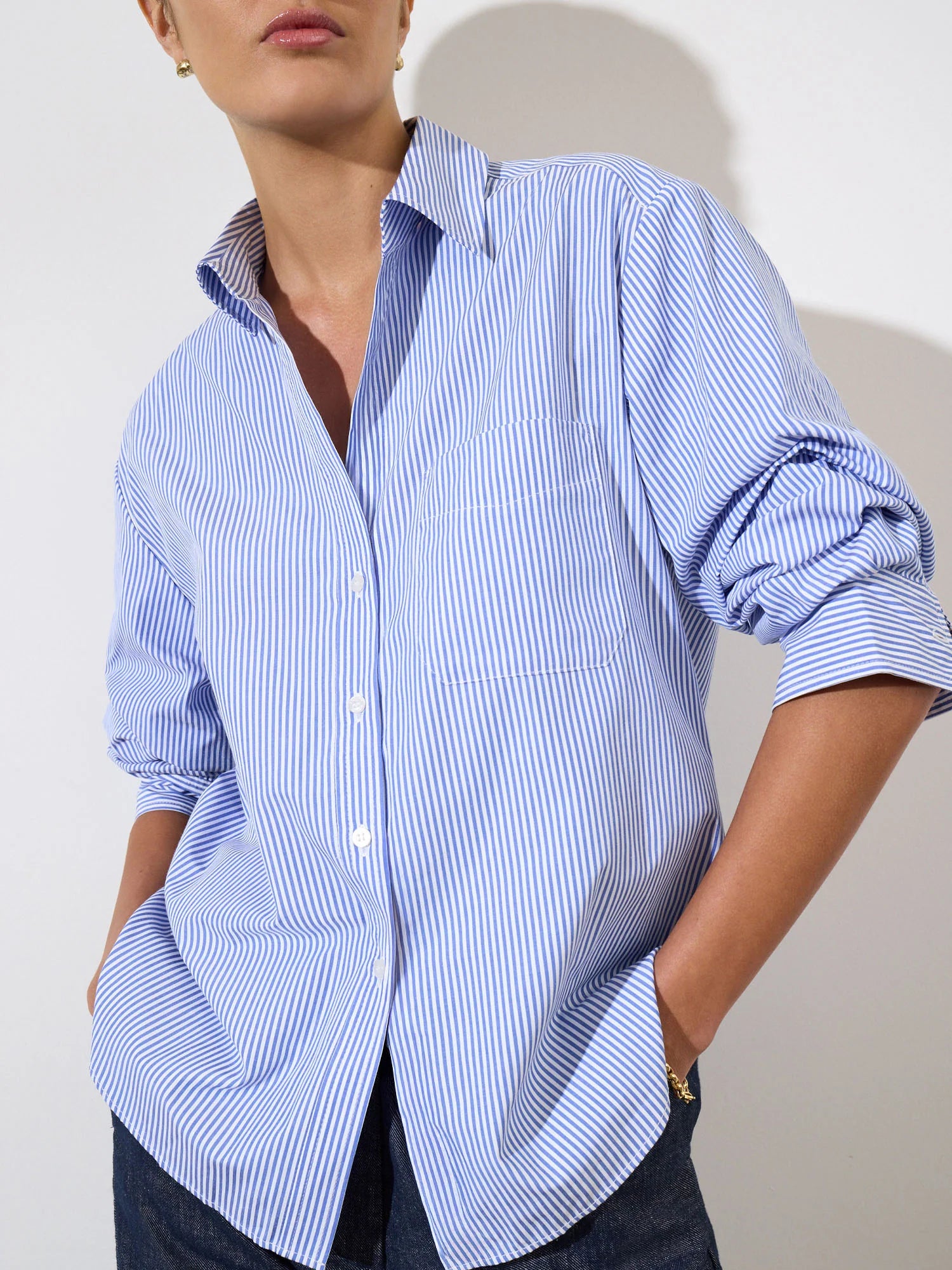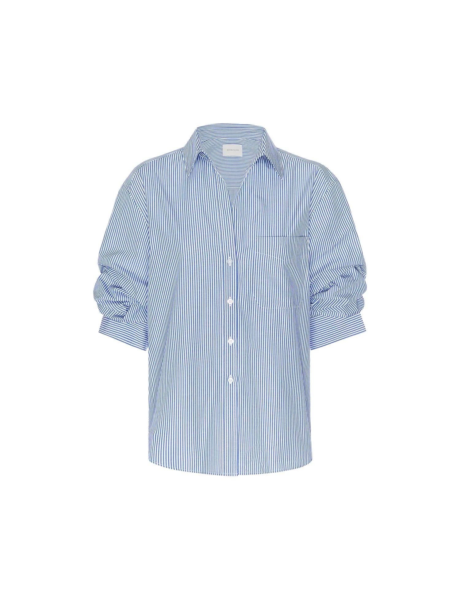 The Pia Shirt is the latest addition to our essential Shirt Collection, offering the same beloved silhouette as our bestselling Everyday Shirt with a fresh twist. Designed with pre-styled scrunched sleeves for a touch of effortless elegance, this relaxed-fit button-front shirt is both versatile and refined. Thoughtful details like subtle grosgrain trim on the placket and a locker loop on the back yoke elevate its timeless appeal.