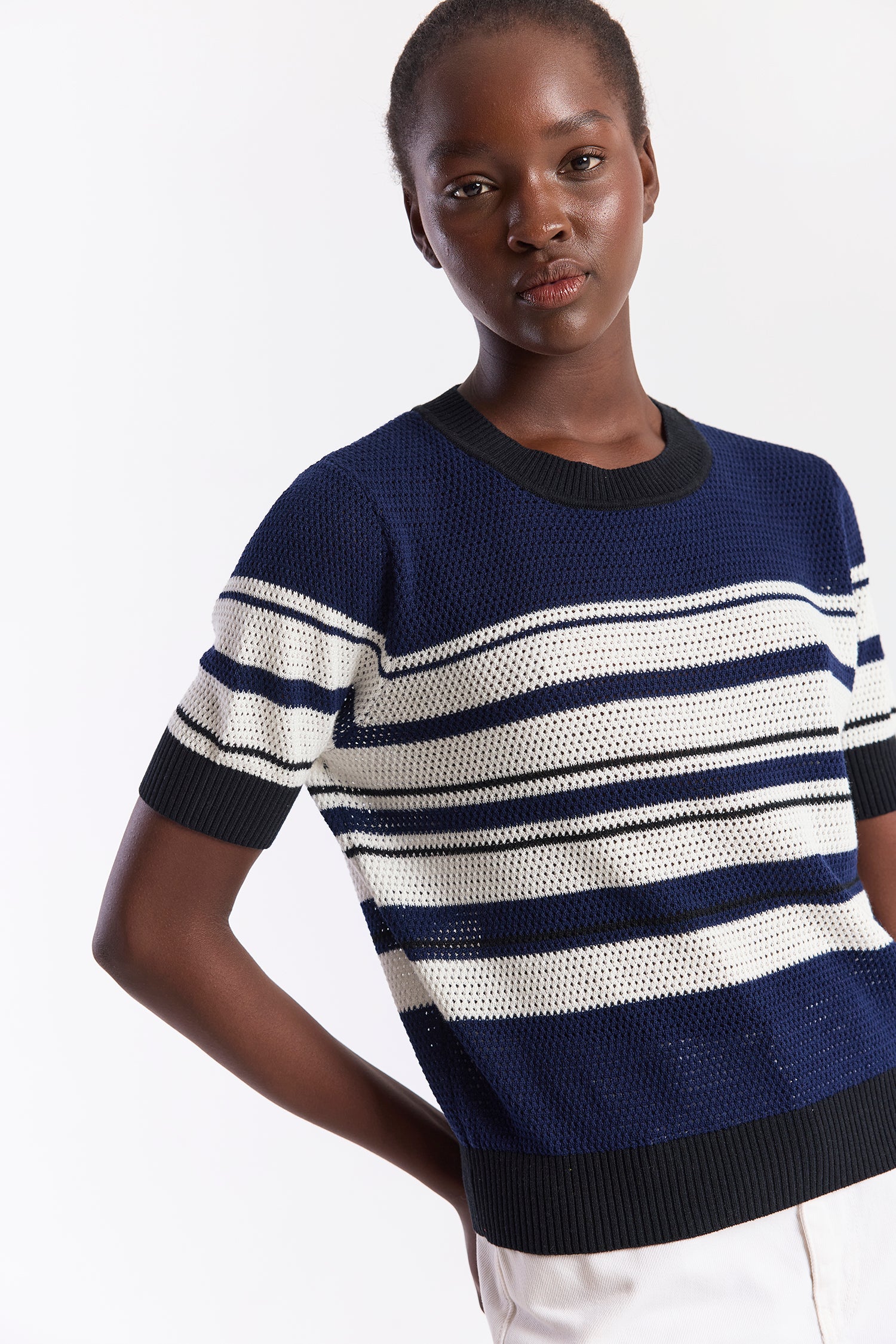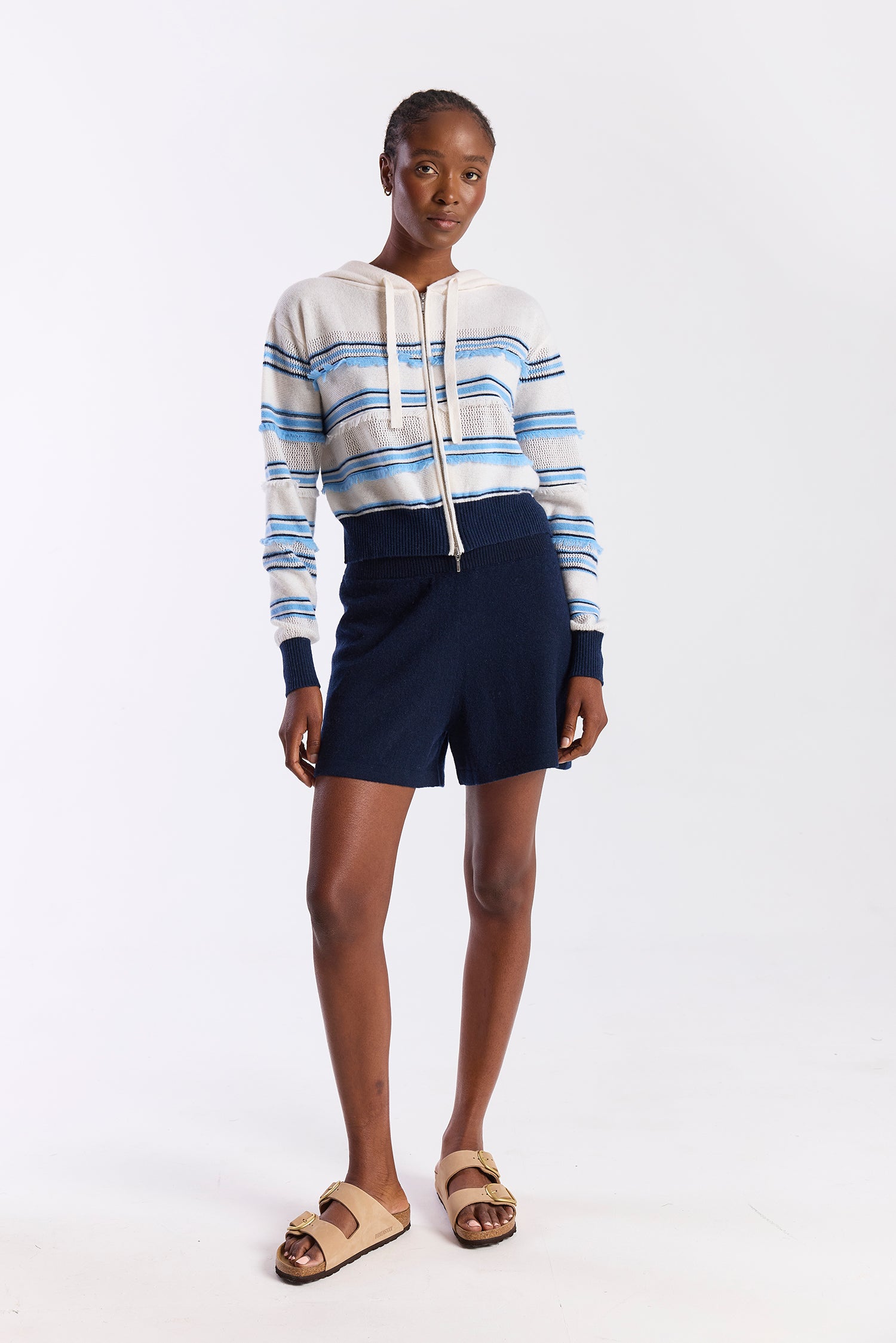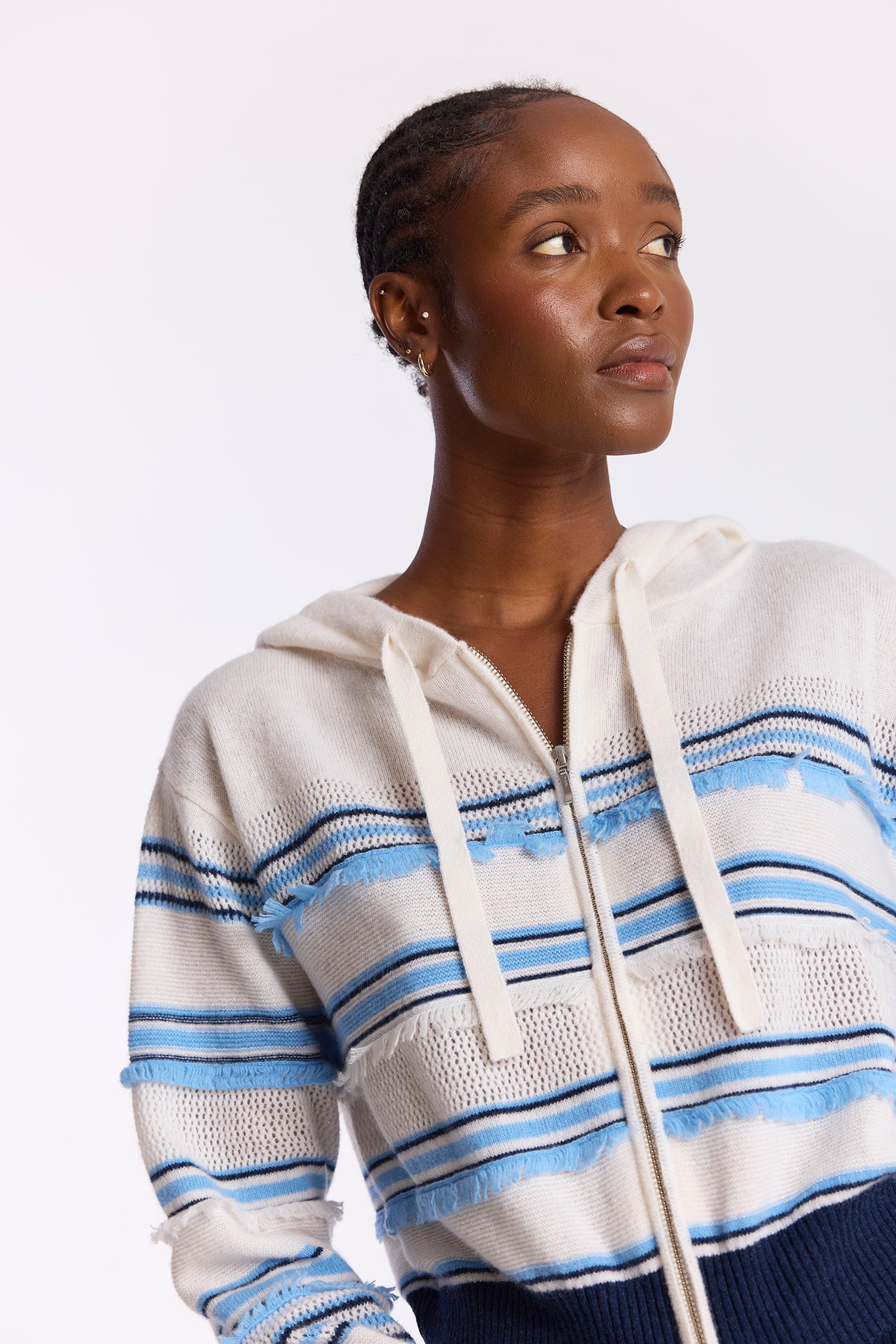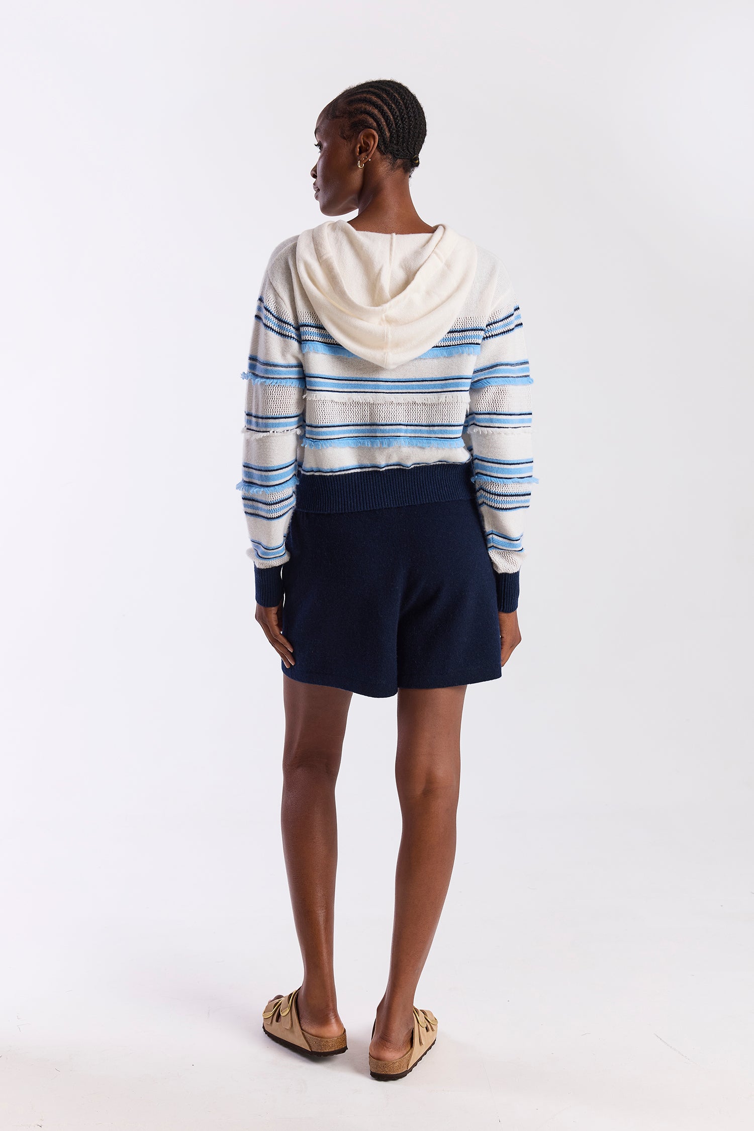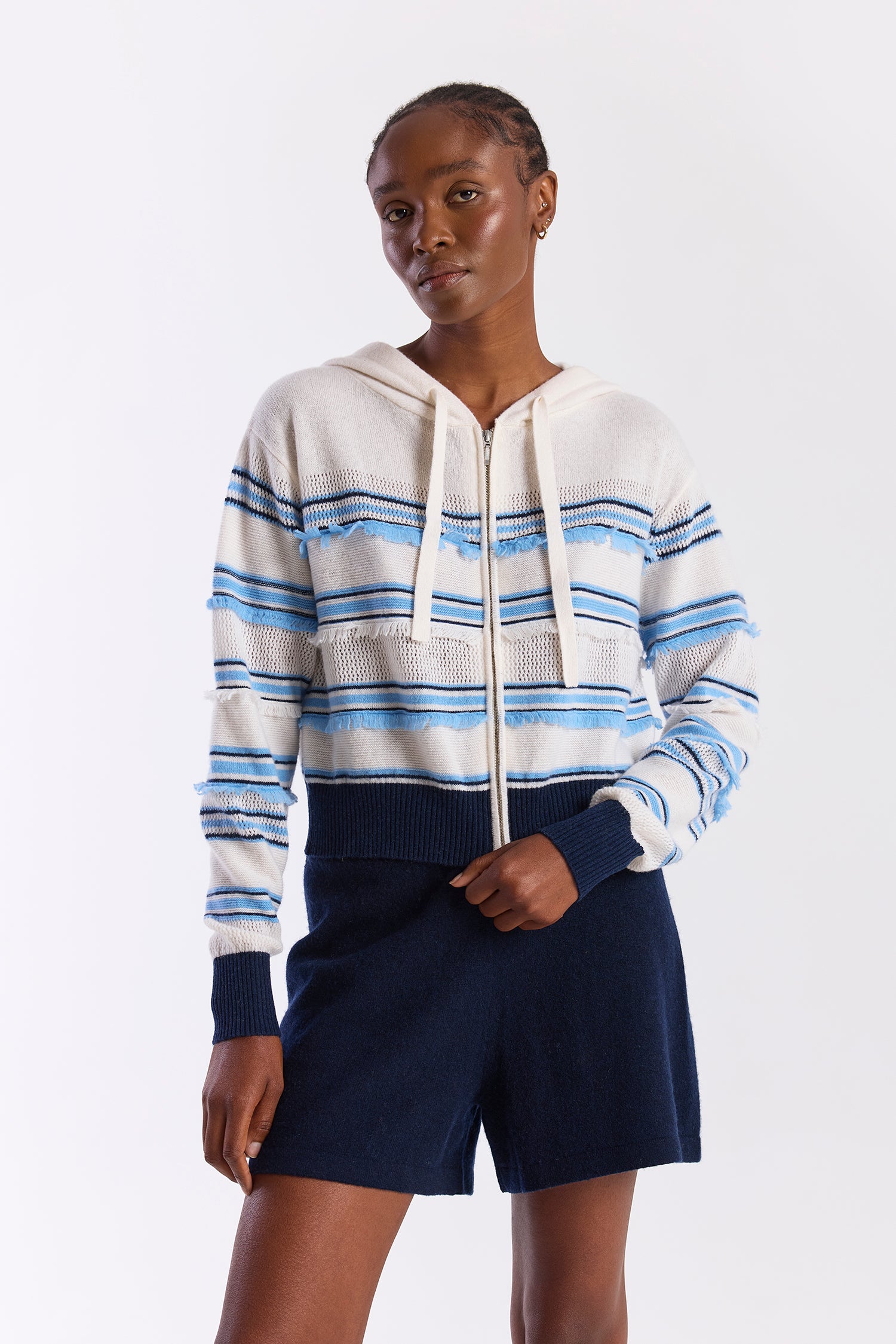 Handbag Stripe Hoodie in Organic White/Splash Navy