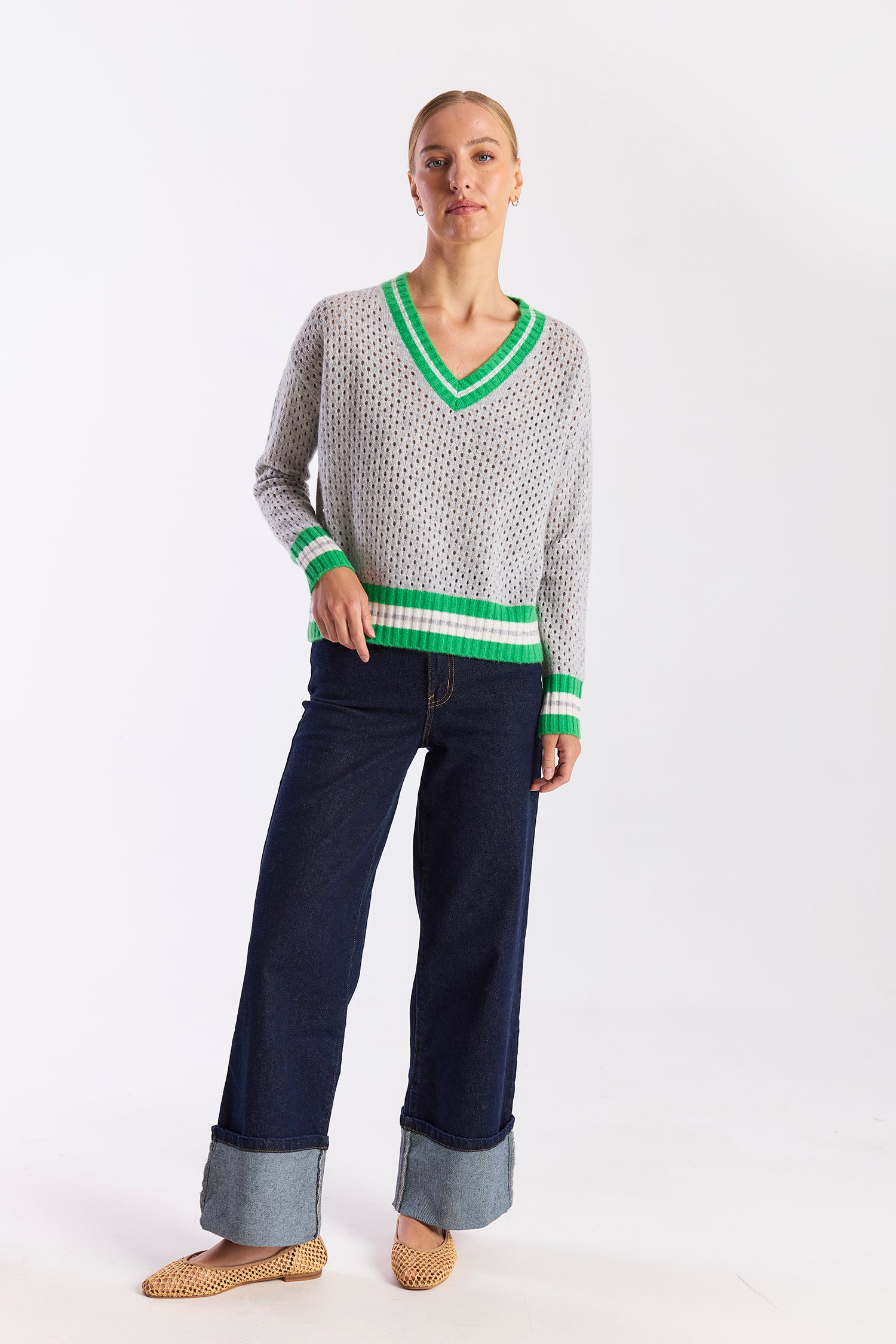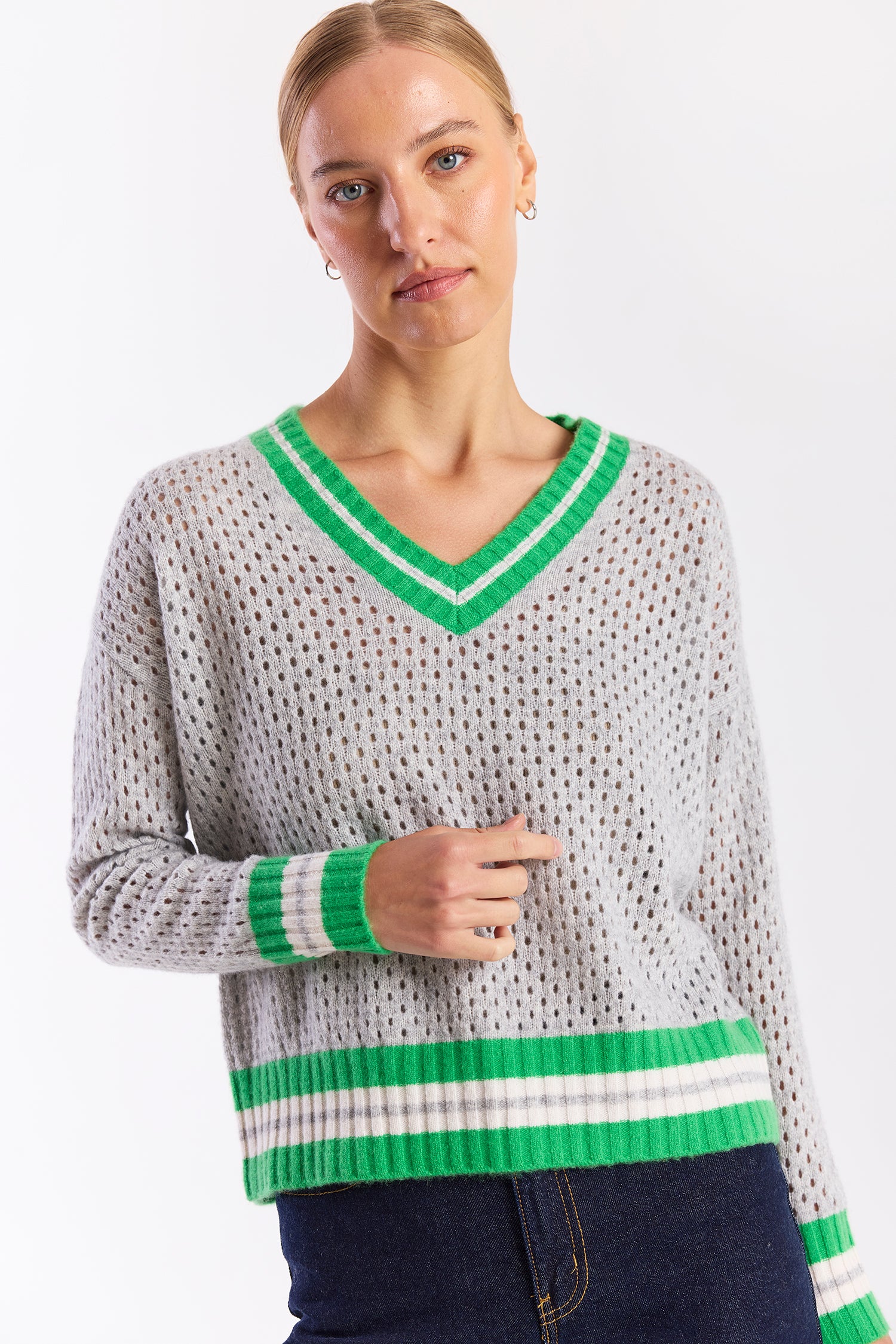 Open Mesh Cricket V-Neck in Super Grey/Spring Green/Organic White