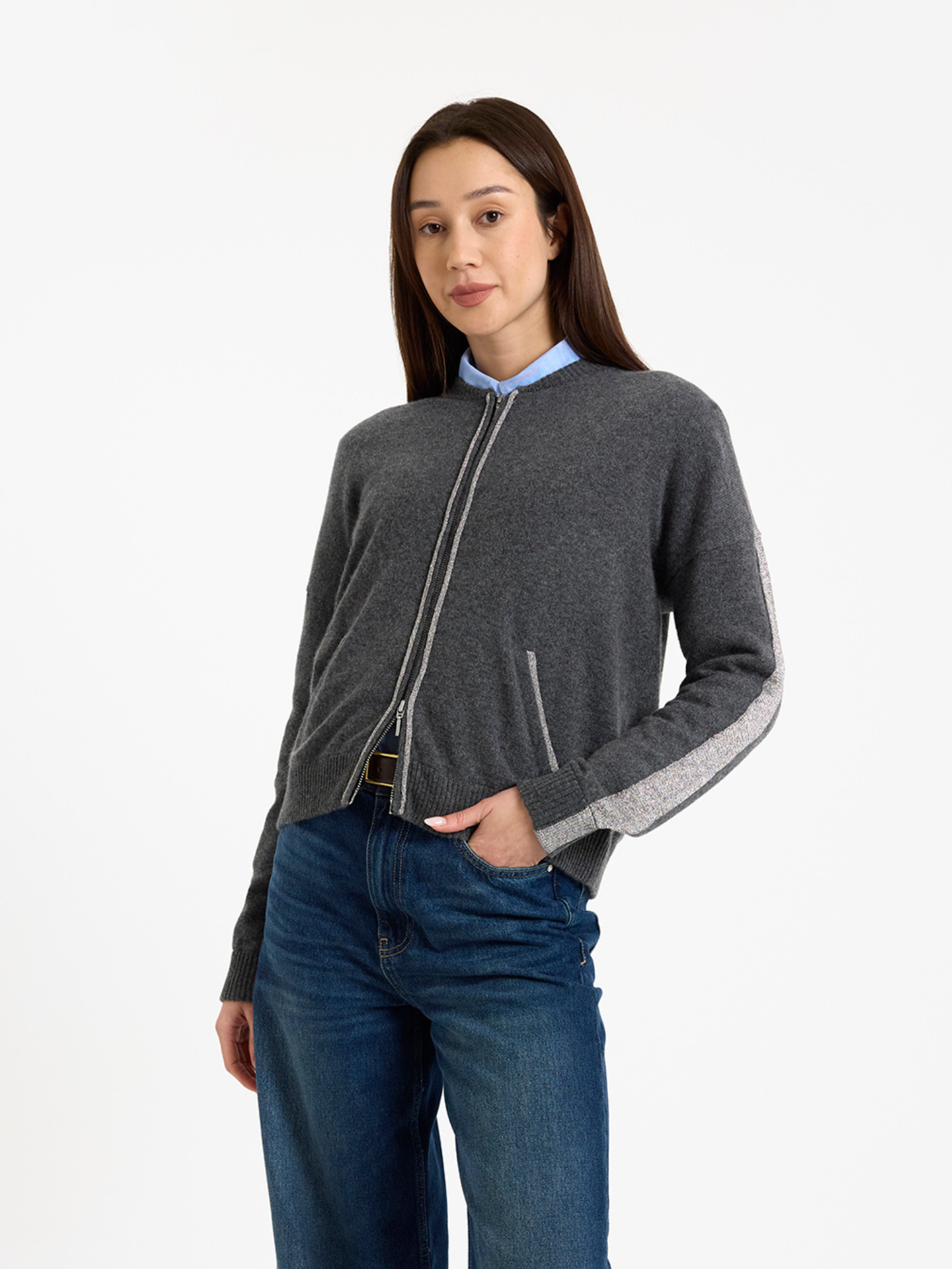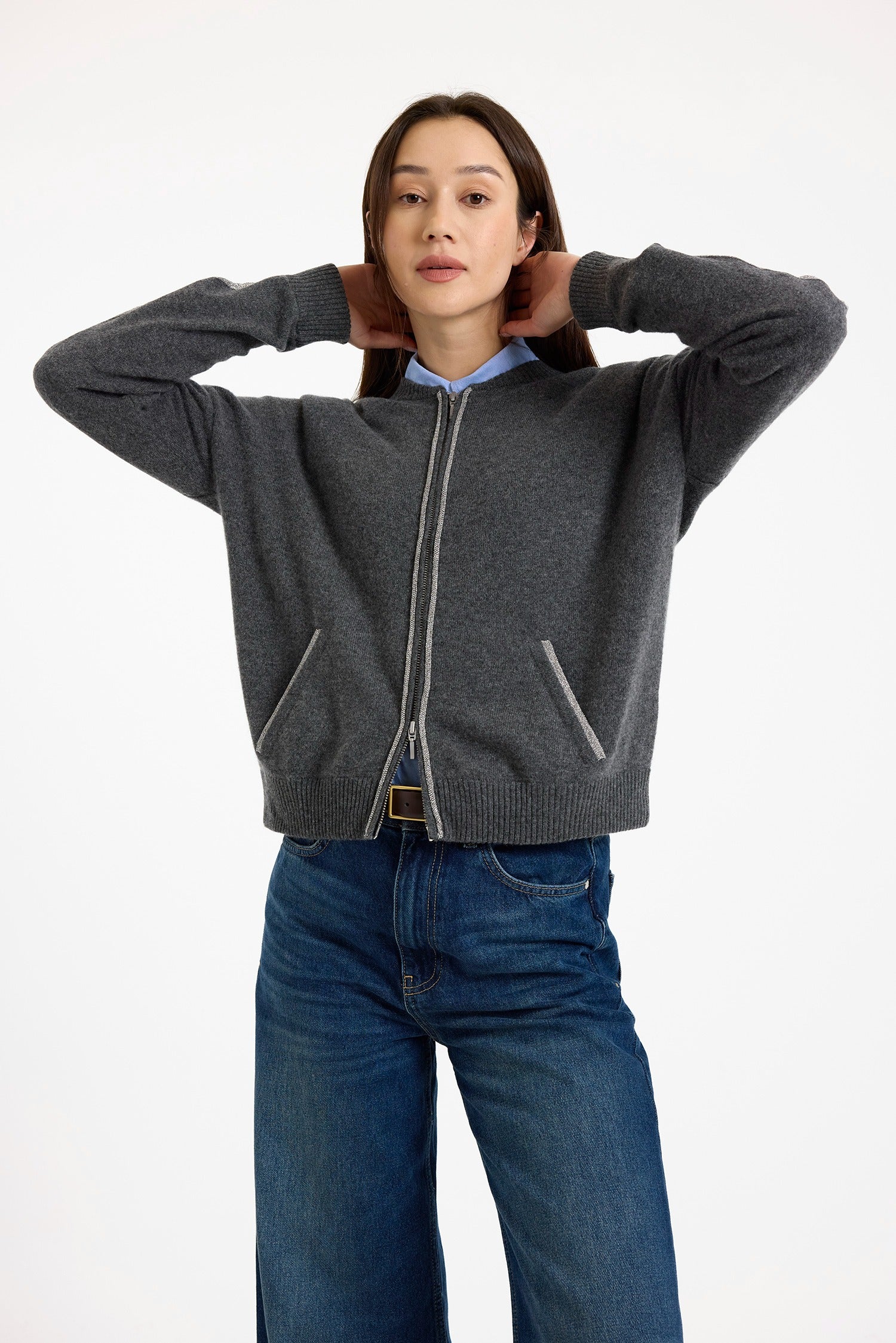Luxe Cashmere Bomber in Derby Grey