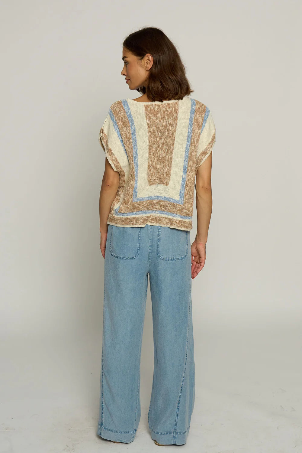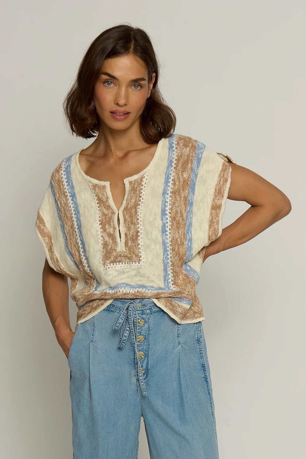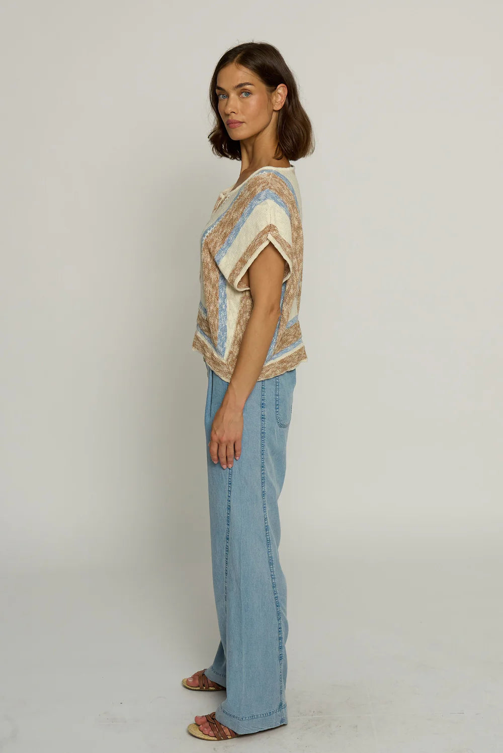 Mitred Stripe Square Top in Khaki Stripe