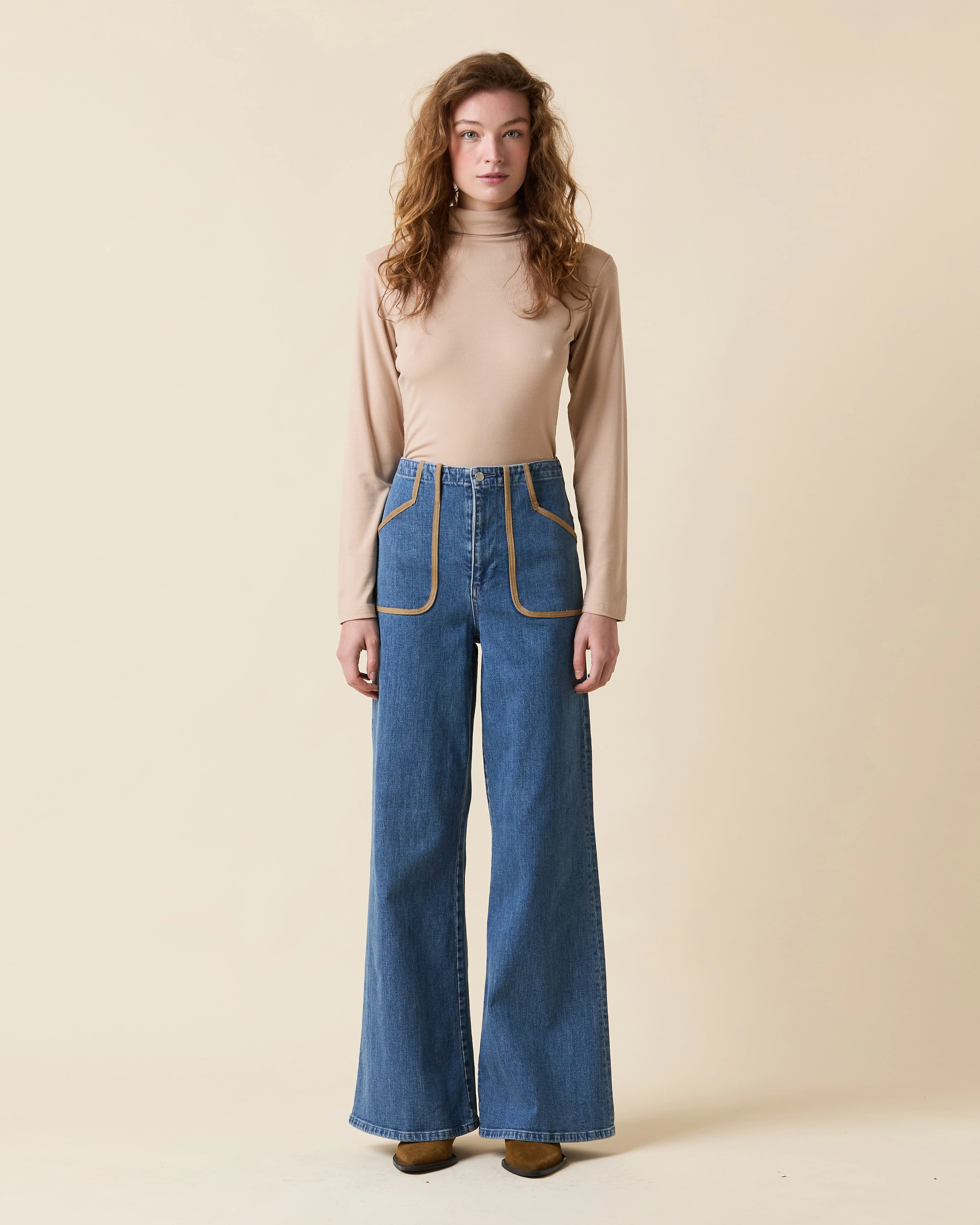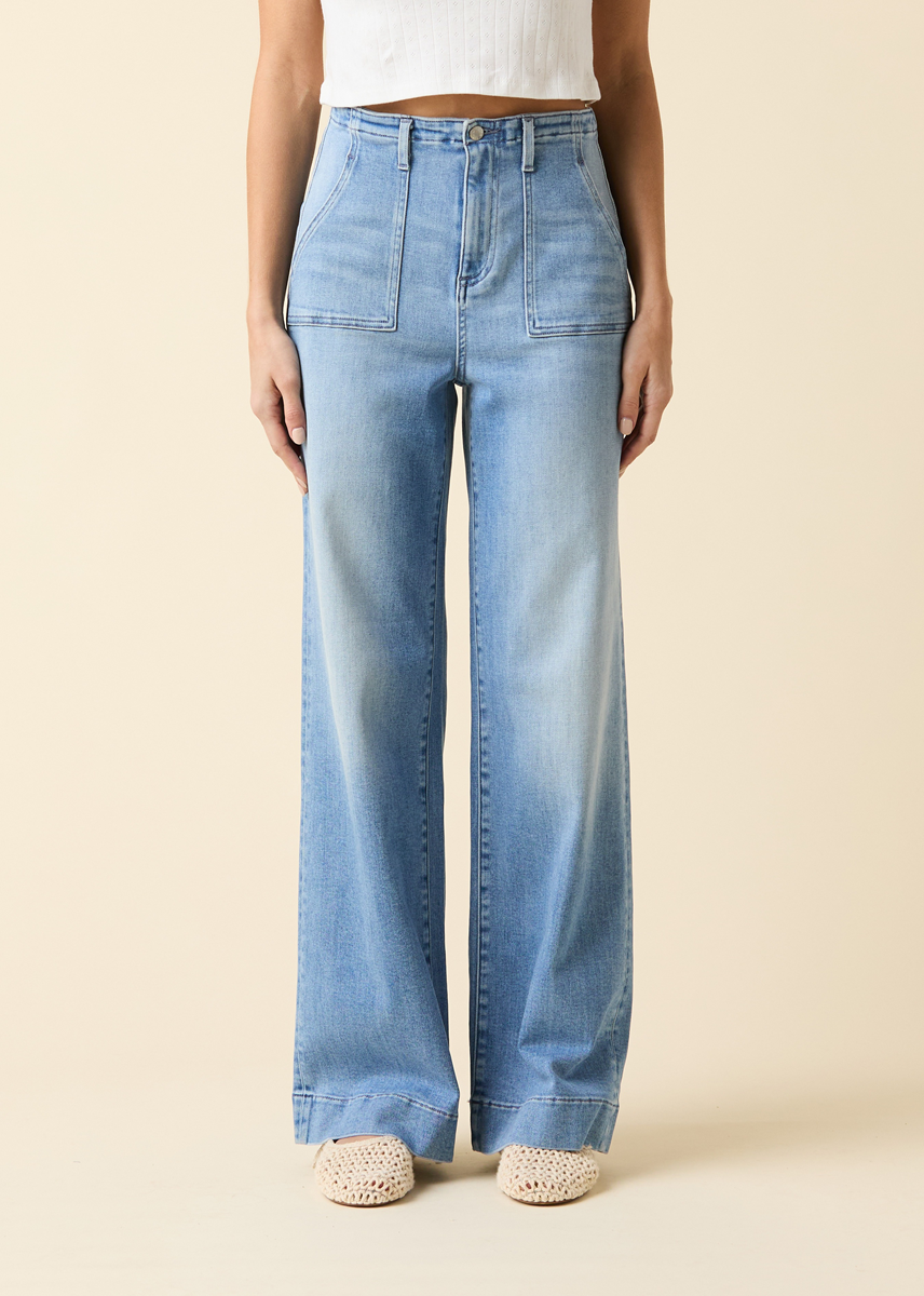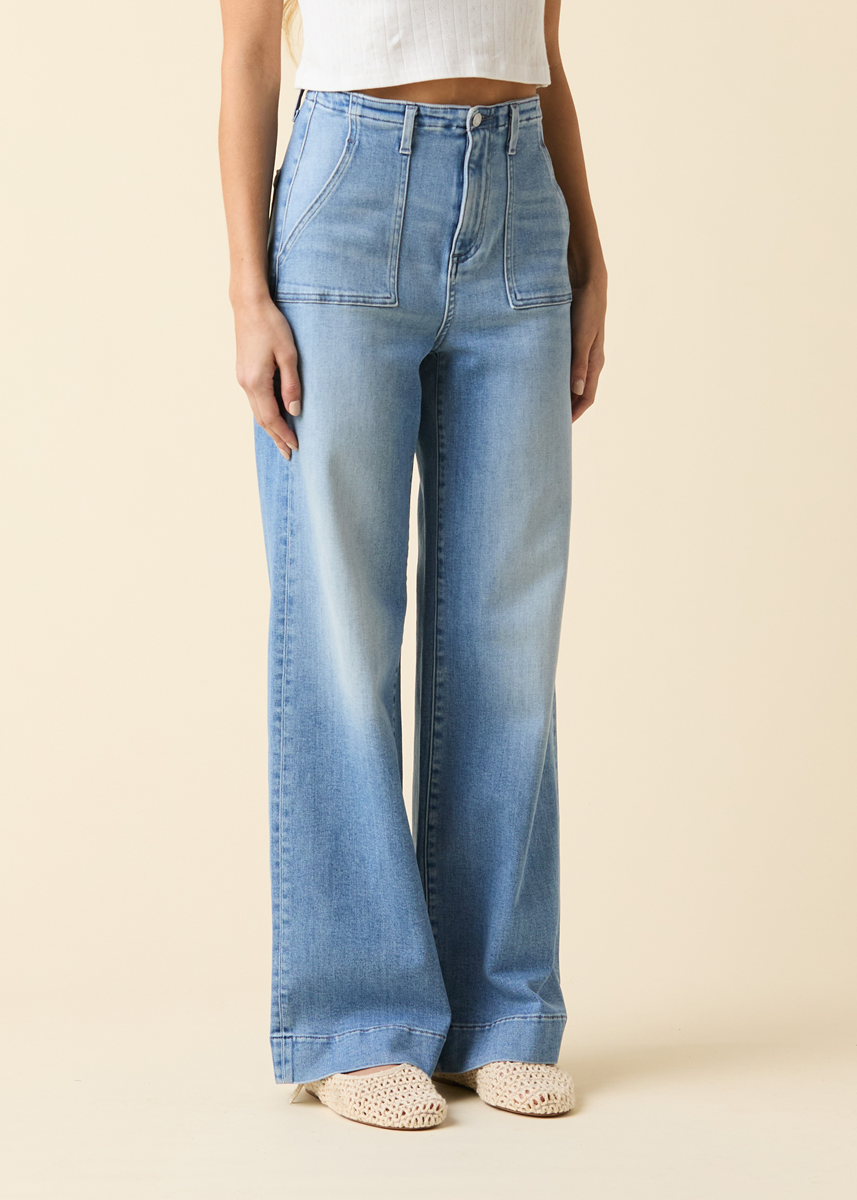 Caleb High Rise Relaxed Stacked Waist in Echo