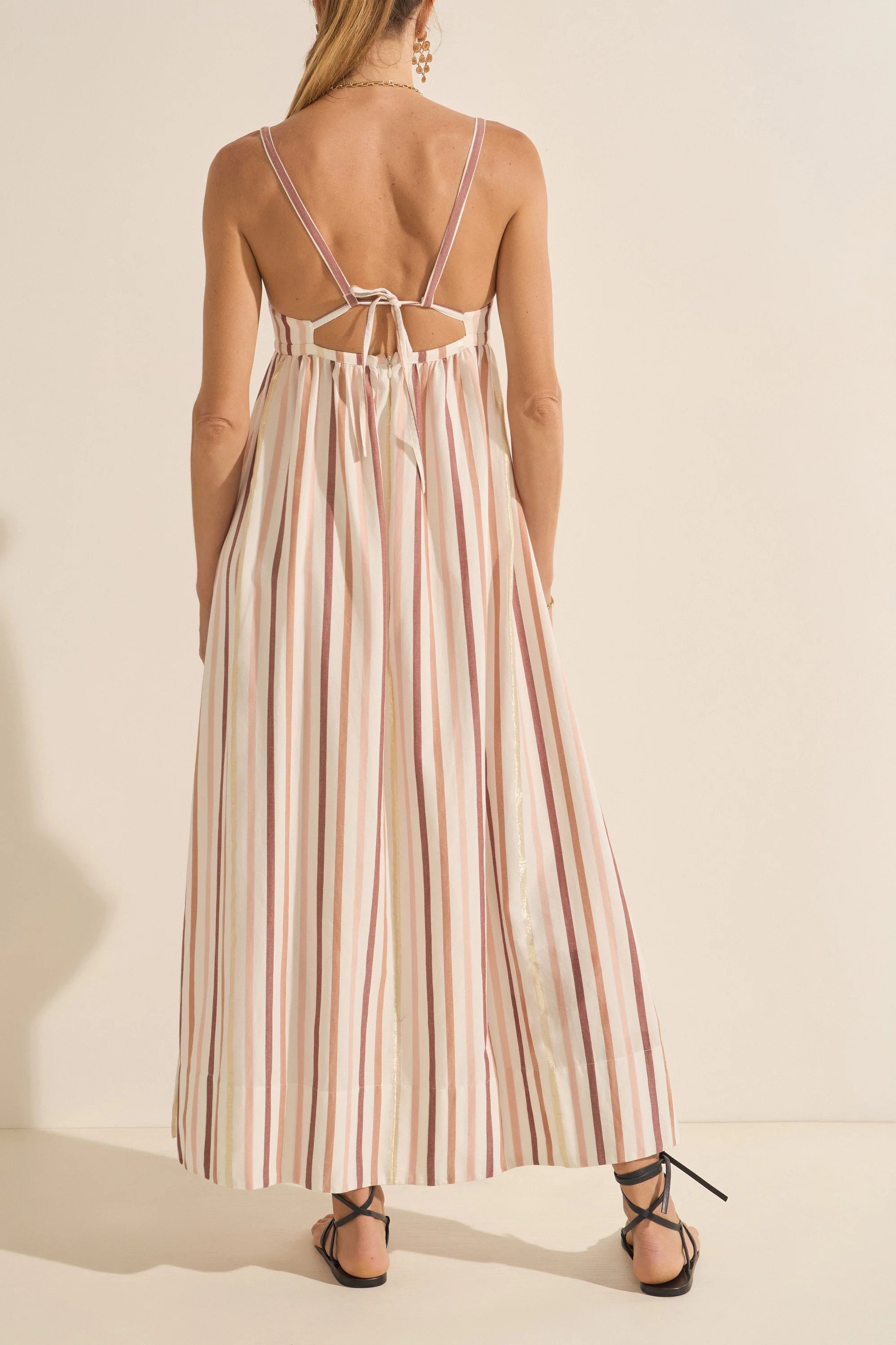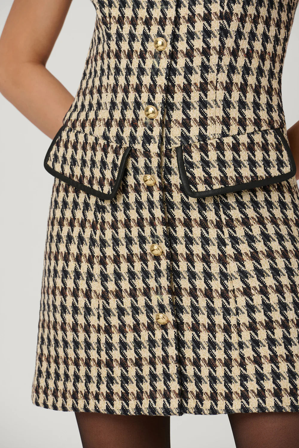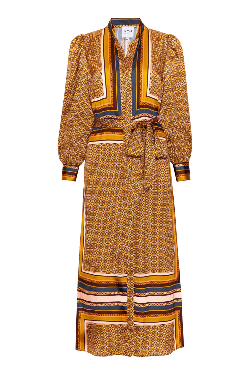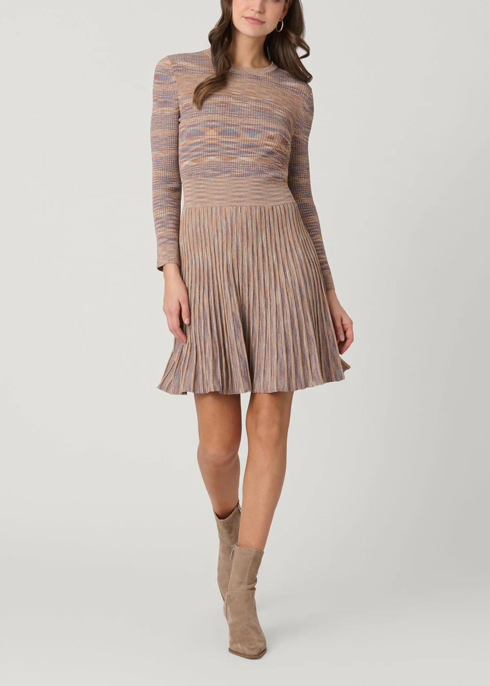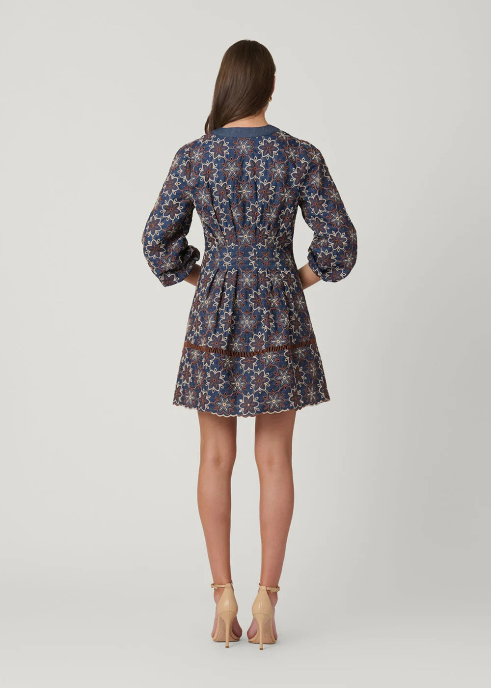 Martha Dress in Tan/Slate Blue/Burnt Umber
