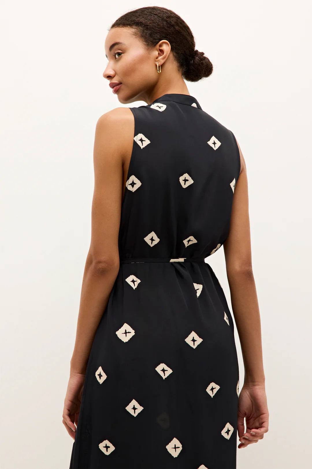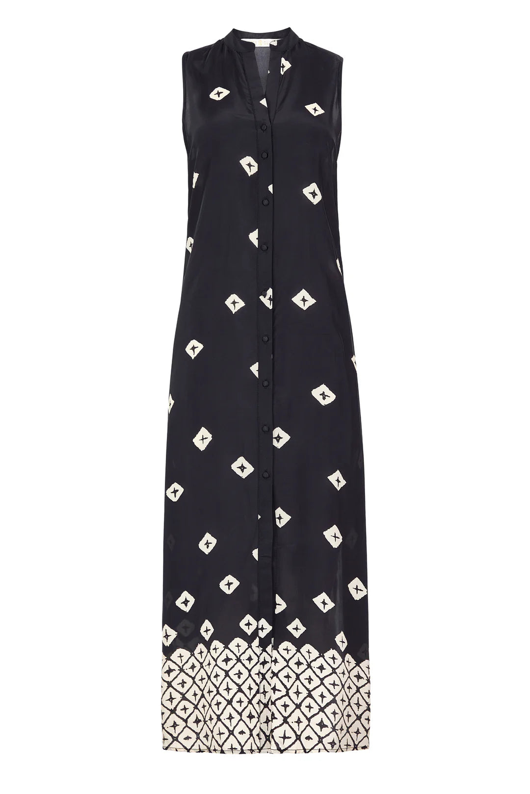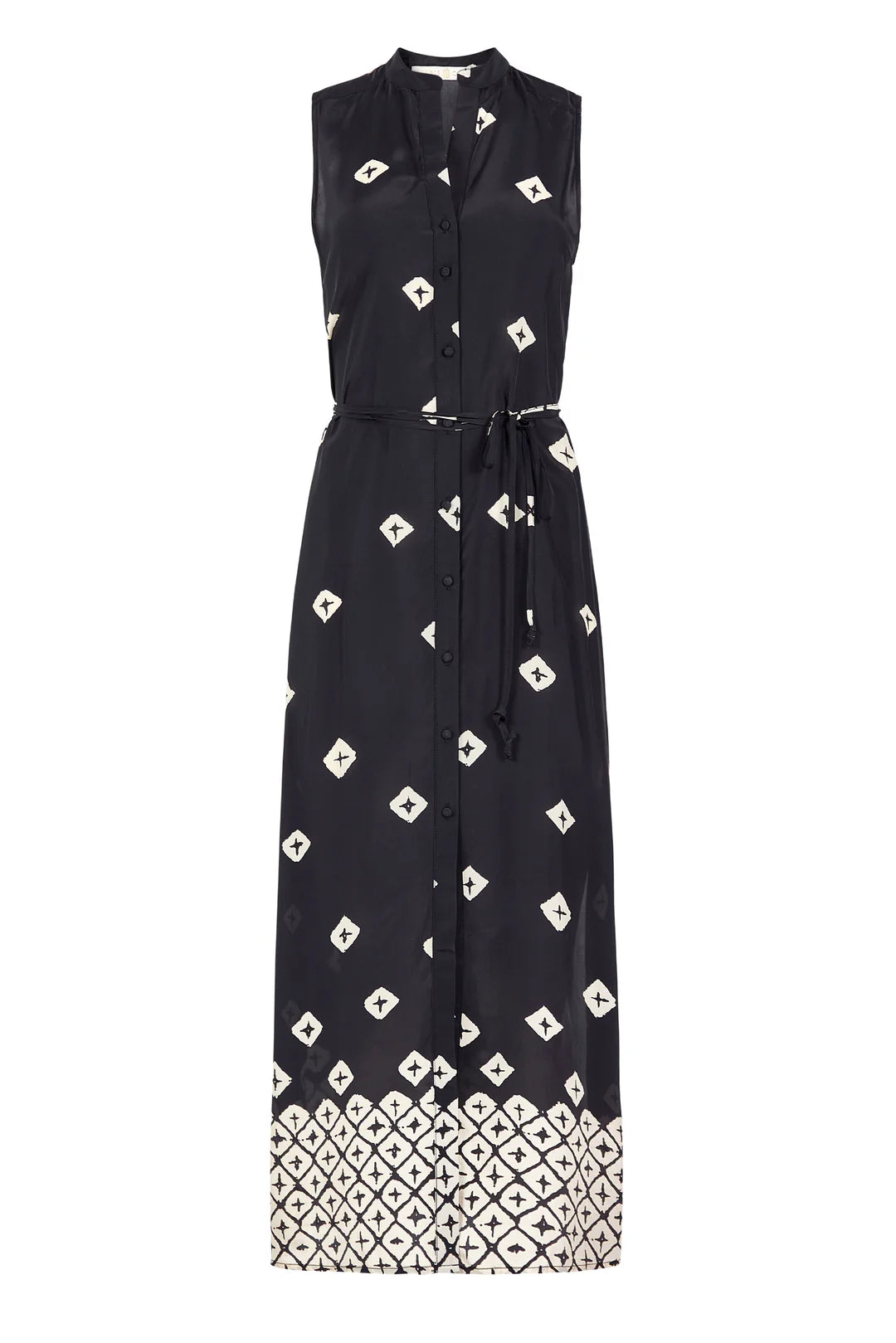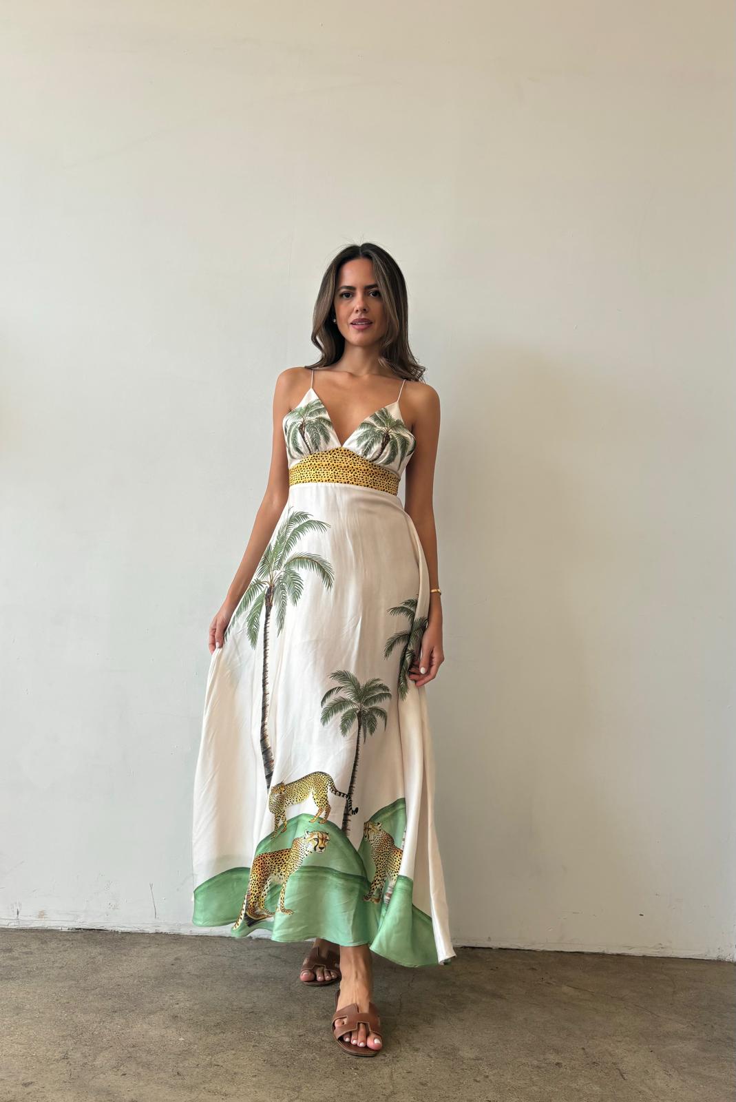 Martha Dress in Tan/Slate Blue/Burnt Umber