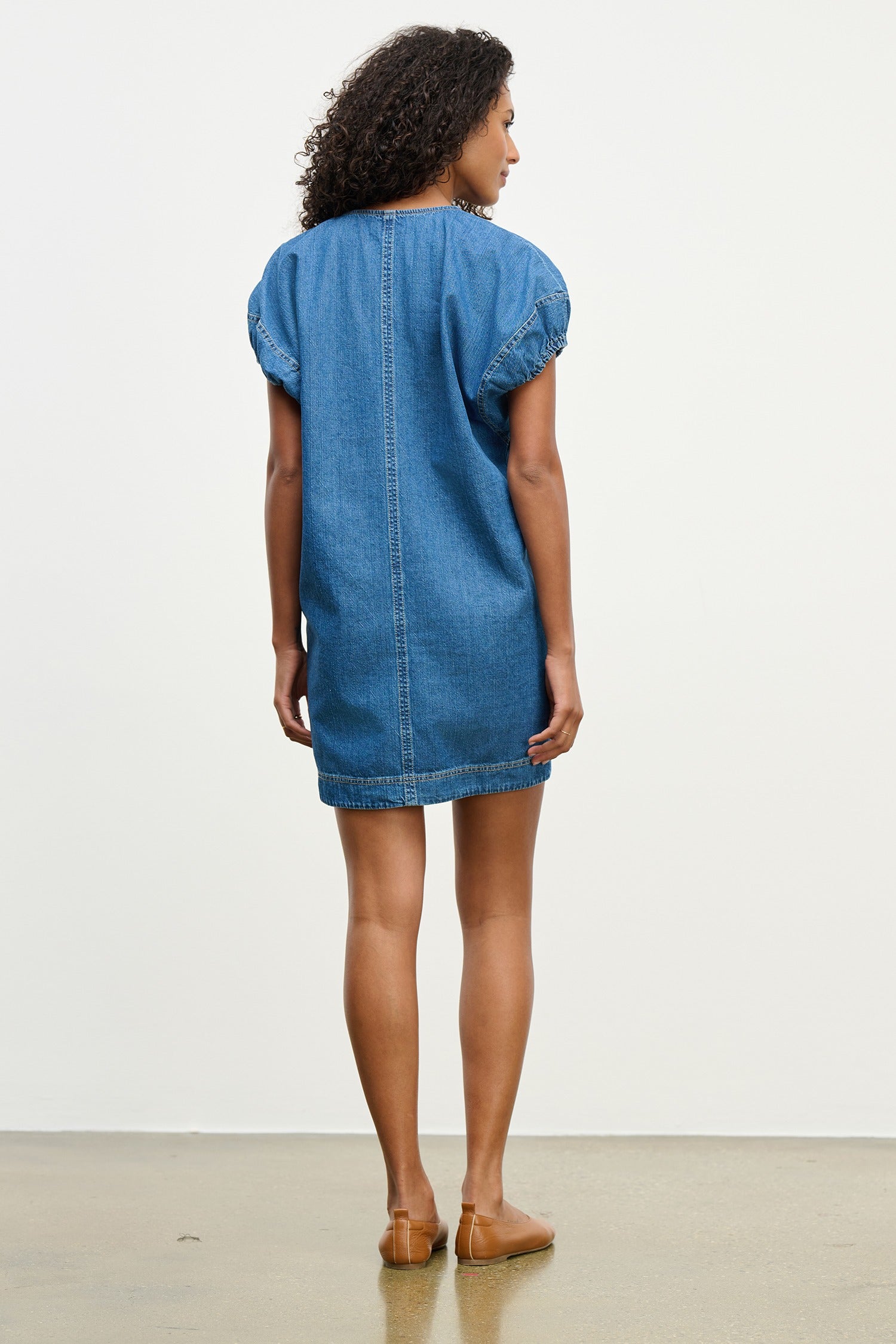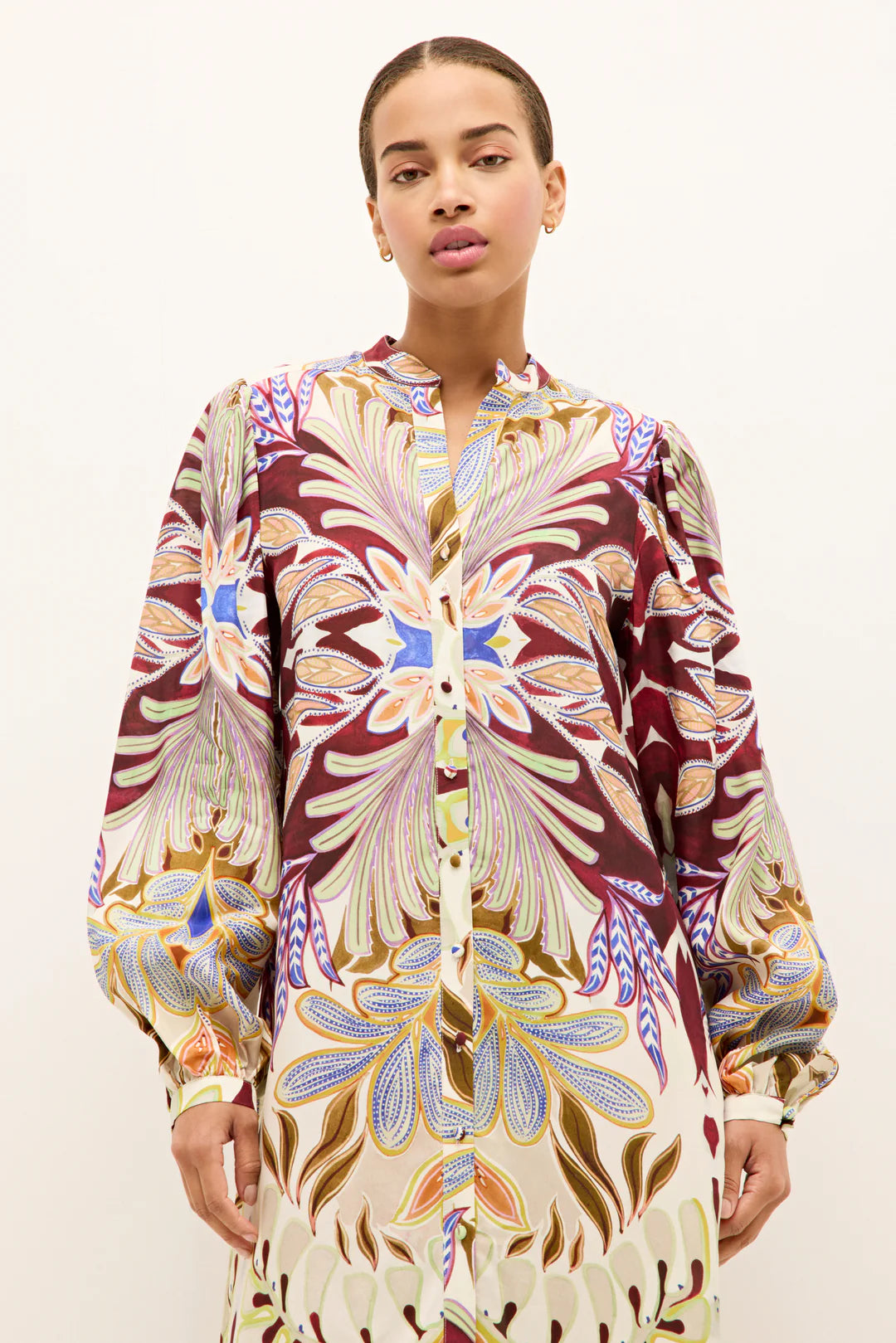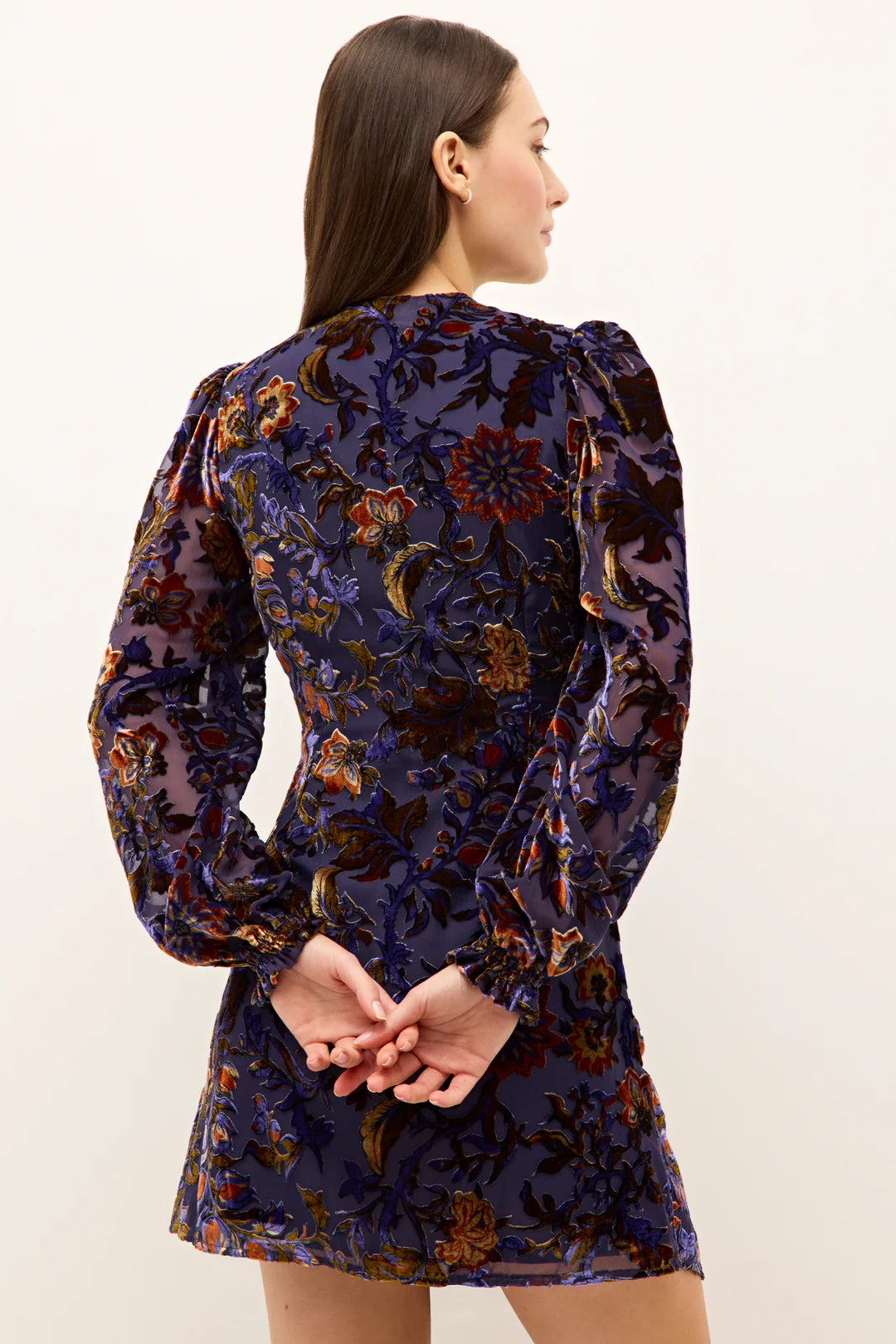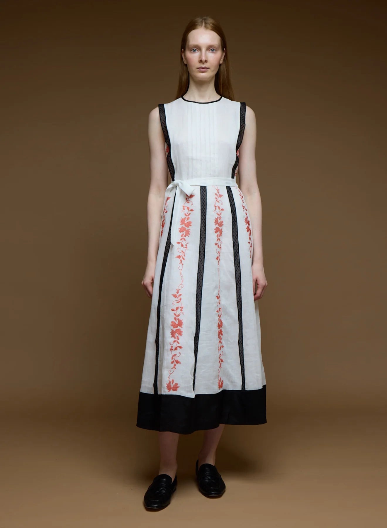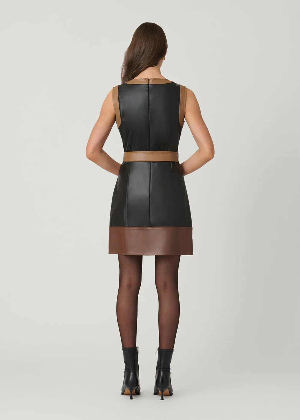 Martha Dress in Tan/Slate Blue/Burnt Umber