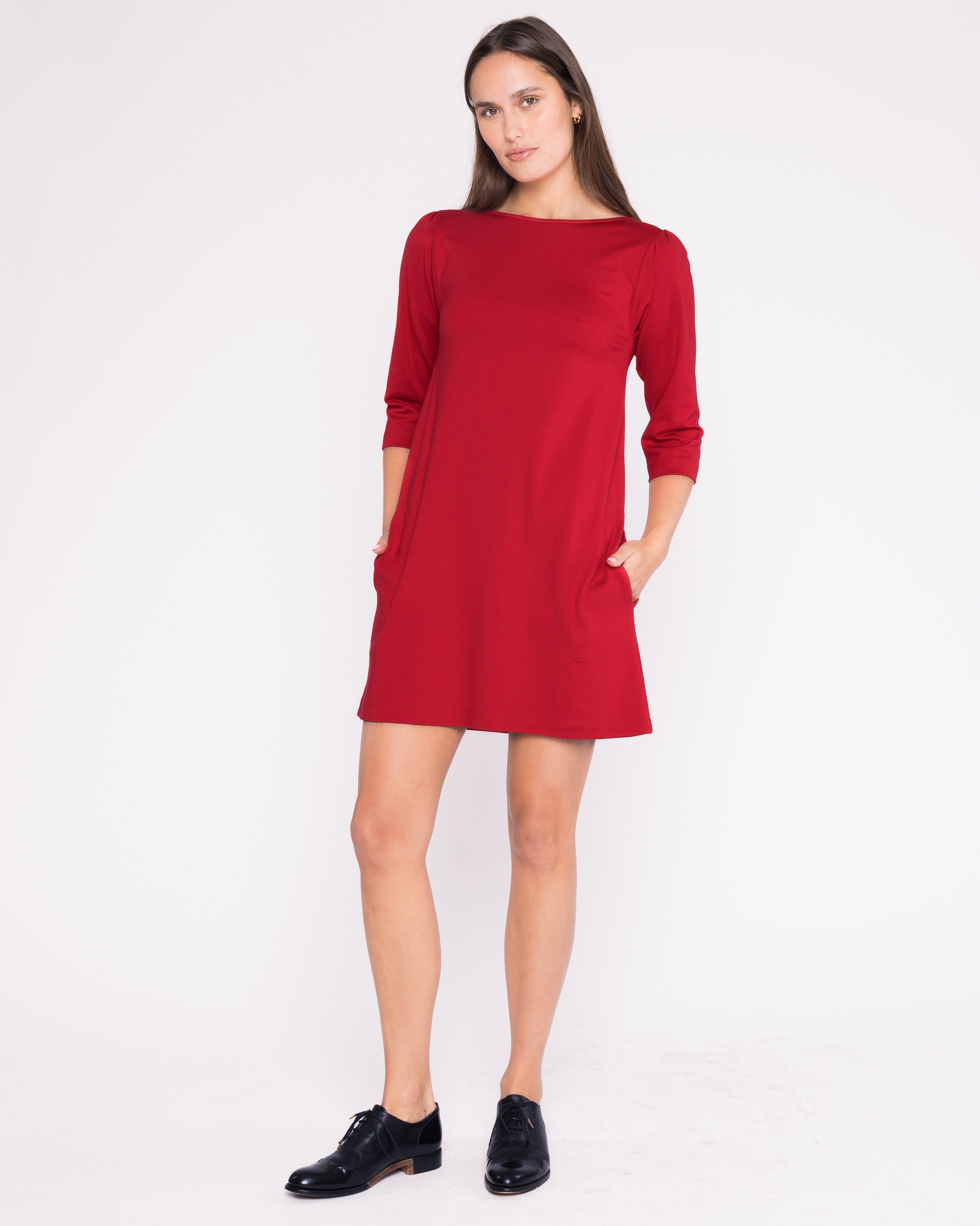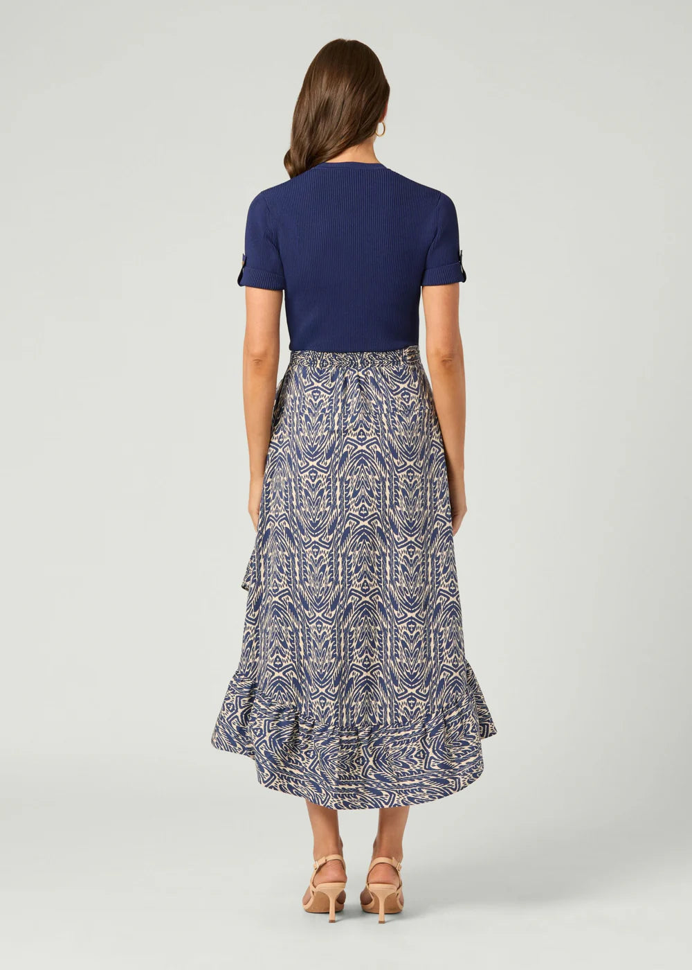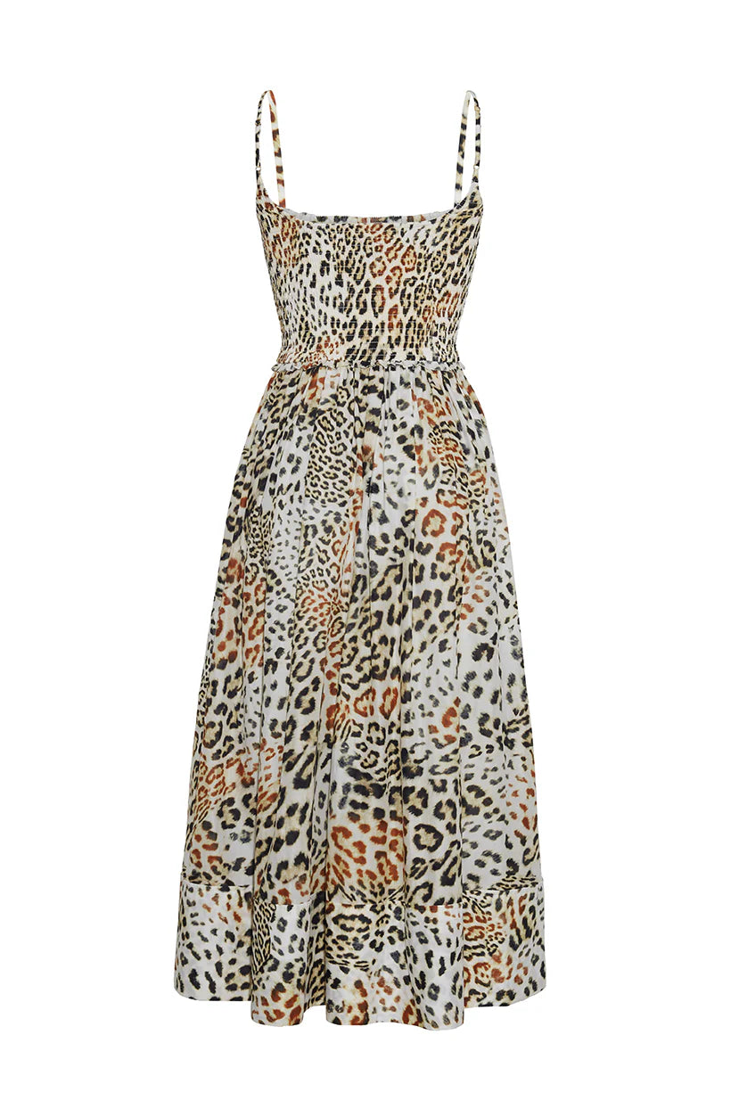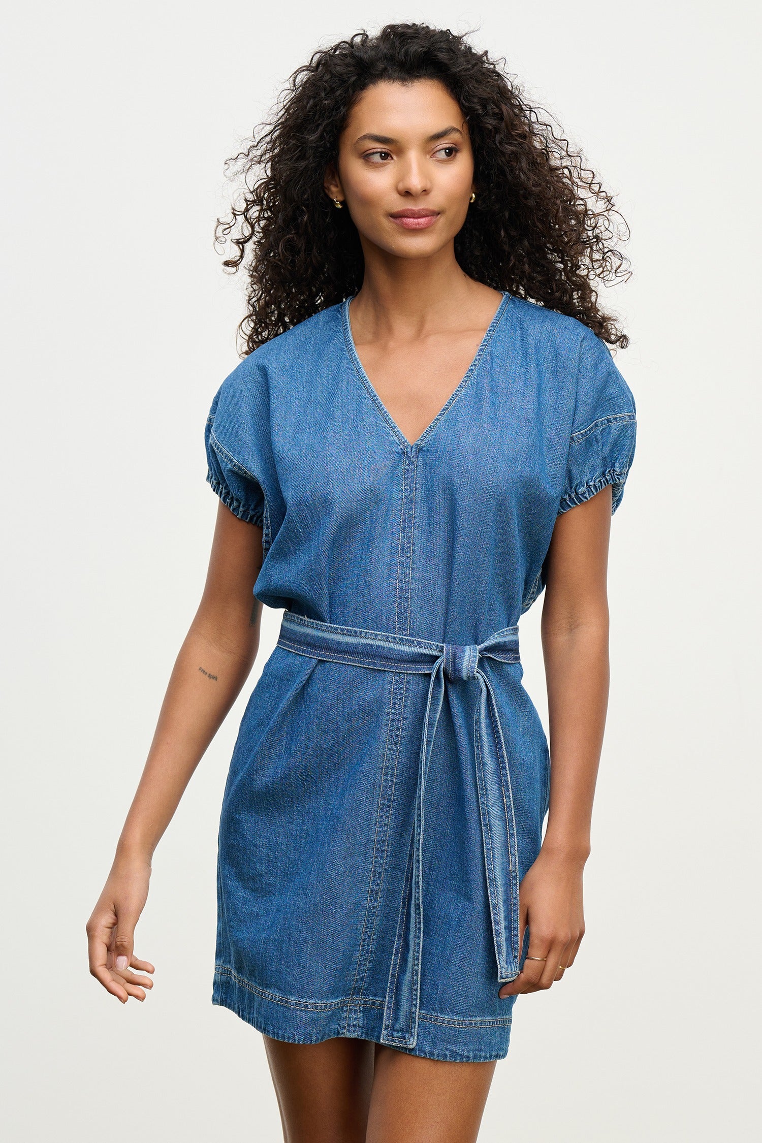 Martha Dress in Tan/Slate Blue/Burnt Umber