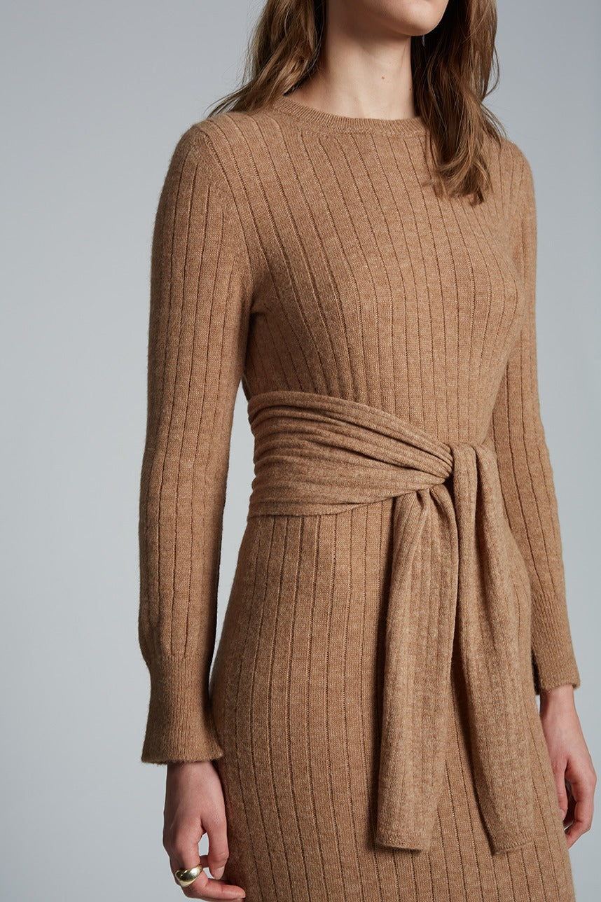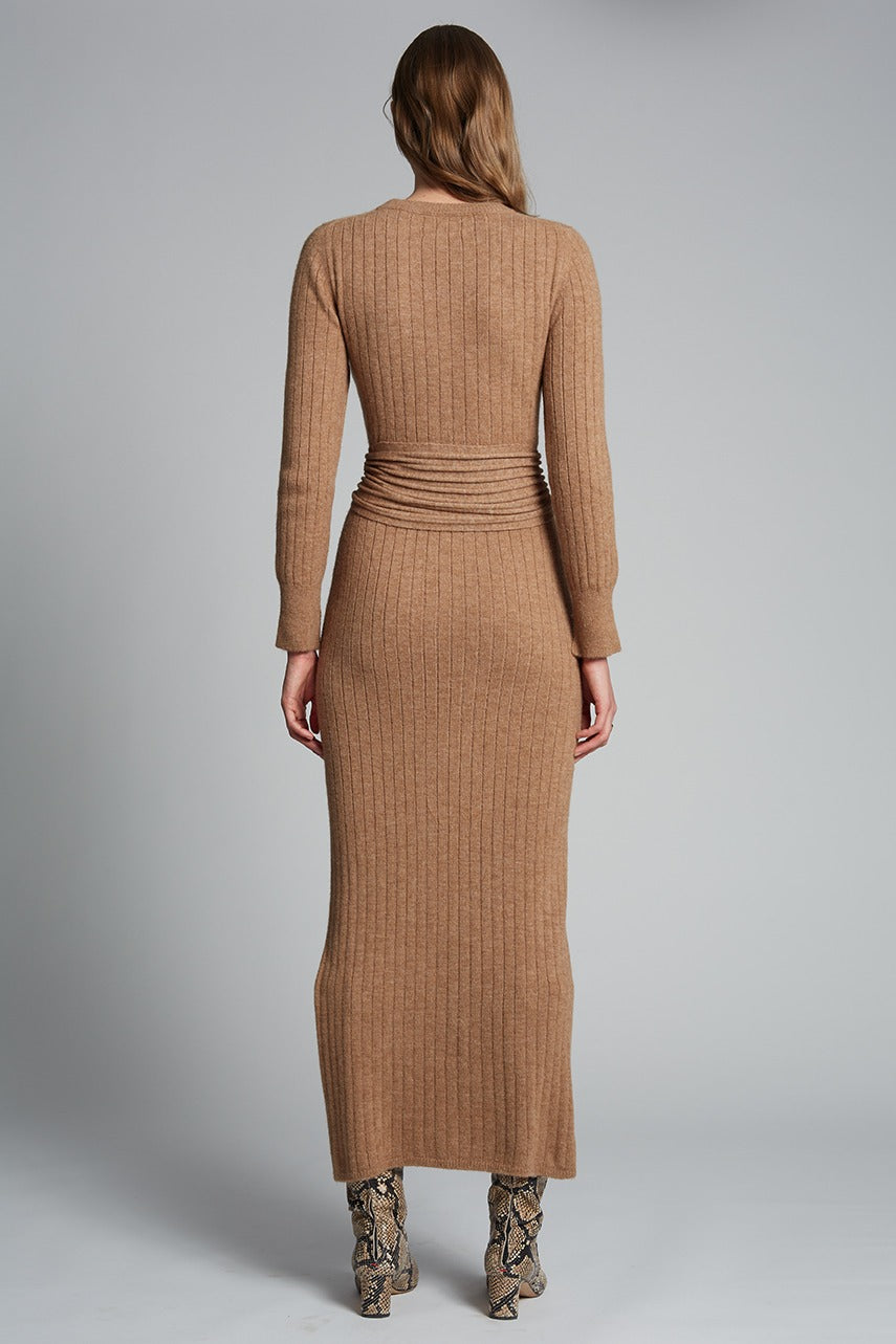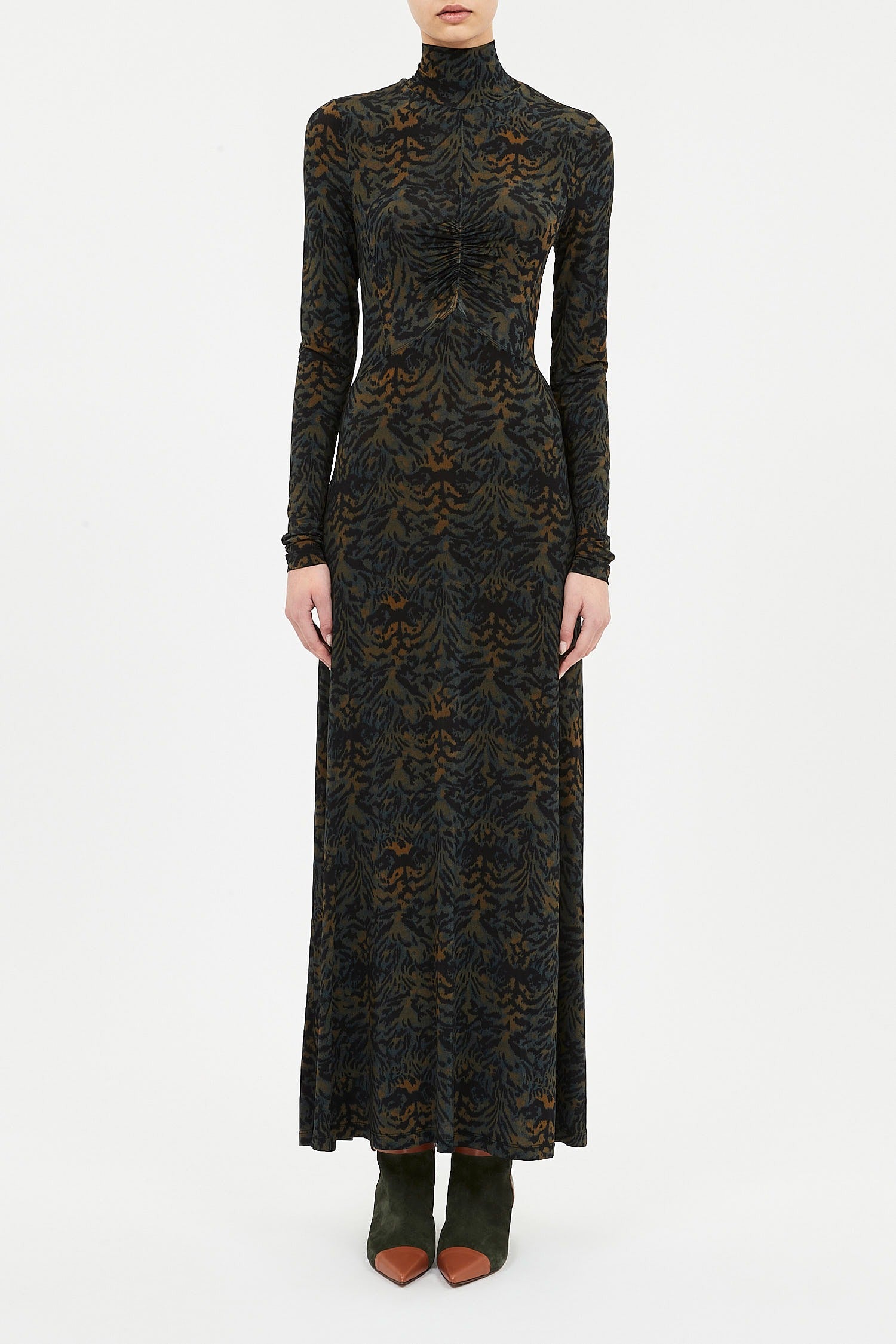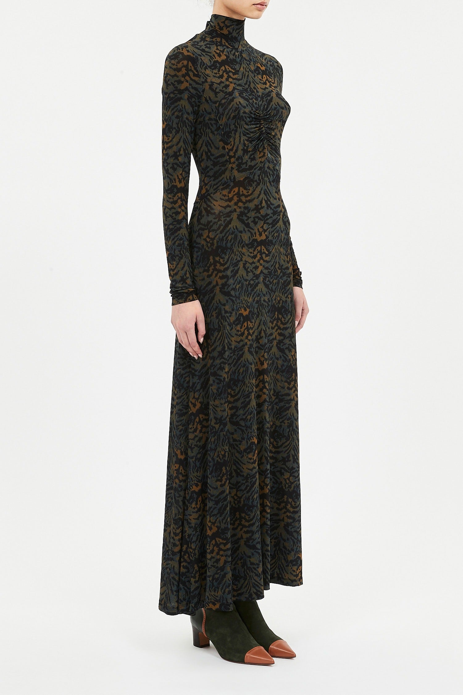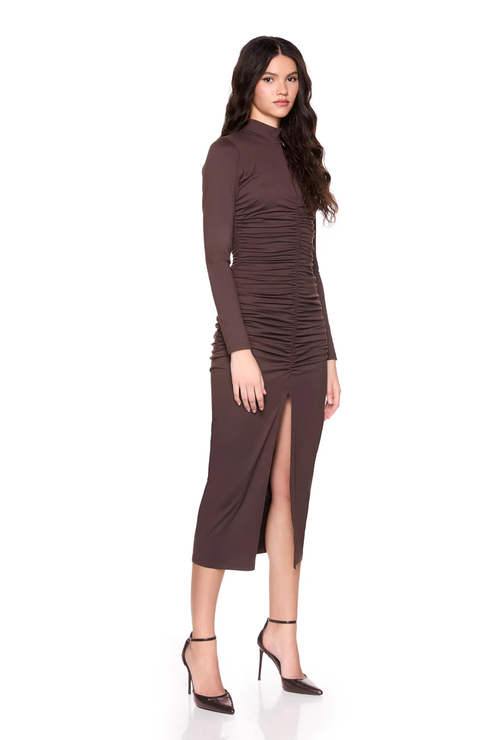 Koa Jersey Ruched Front Turtleneck Dress in Desert Jasper