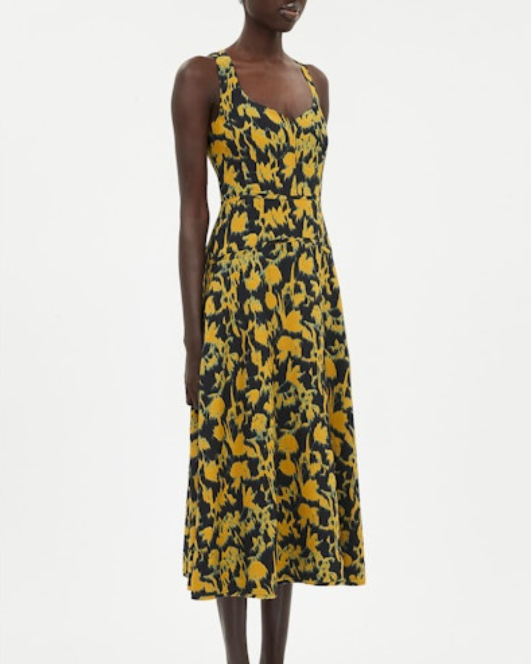 Vivi Sweetheart Neckline Midi Dress in Tourmaline