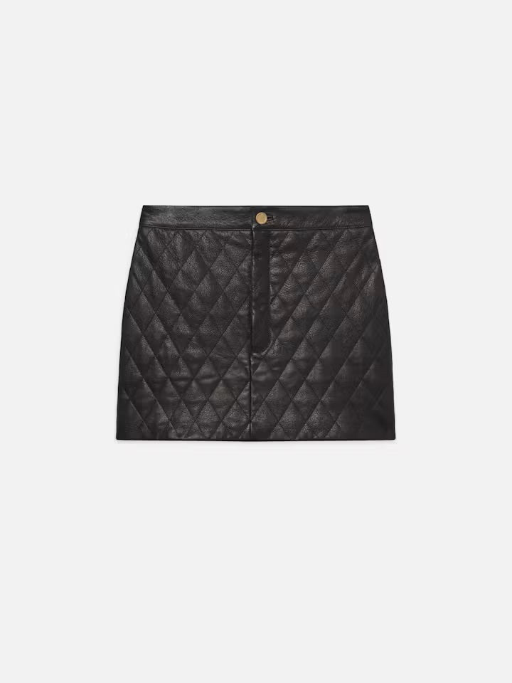 Refresh your wardrobe with this chic mini skirt, crafted from quilted leather for a luxe touch. The high-waisted silhouette pairs perfectly with a tucked-in tee or a half-tucked blouse for a flattering fit. Finish the look with knee-high boots for a stylish, on-the-go outfit. We recommend ordering your usual size.