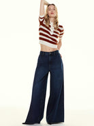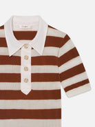 The Bold Stripe Polo blends vintage varsity vibes with modern sophistication. Crafted from a luxe cashmere-cotton blend, it features elbow-length sleeves, a sharp squared-off placket, and gleaming gold dome buttons. The ribbed hem hits at the high hip for a flattering finish—making it an effortlessly elevated staple for every season.