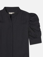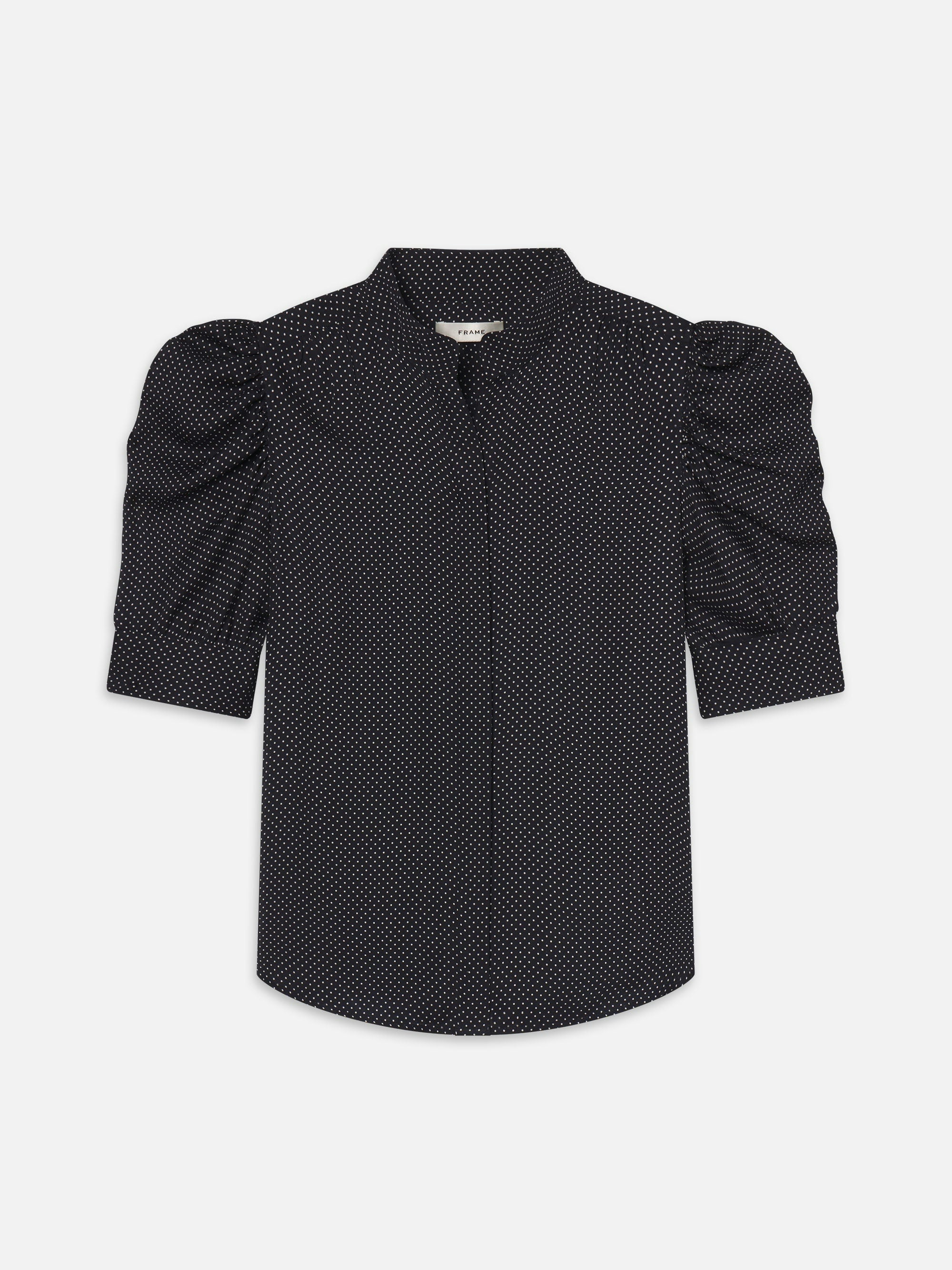 Modern romance meets timeless style in this FRAME silk blouse. Designed with a refined high neckline and statement puff sleeves with delicate ruching, it strikes the perfect balance between structure and softness. A wardrobe favorite for a reason—it pairs effortlessly with your go-to denim for an elevated everyday look.