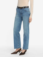 Meet your new go-to: the Mellow Jean. Crafted from super-stretch denim for effortless comfort, this modern silhouette features a true mid-rise, ankle-grazing length, and a slim wide leg that strikes the perfect balance between relaxed and refined. Finished with a frayed raw hem, it’s an easy nod to FRAME’s next-gen cool.