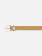 Made from luxurious camel suede and featuring a squared silver buckle, this belt adds a polished touch to denim, trousers, or crisp shirting. Crafted from 100% leather, it boasts clean edges and a soft, smooth texture for a refined finish.