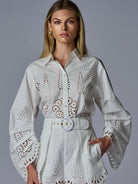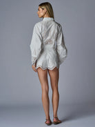 The Raquel Top blends playful charm with refined sophistication. Thoughtfully designed with elegant pleats along the inner sleeves and voluminous, billowy arms, it offers a relaxed yet flattering silhouette. A delicate back cut-out with a tie detail adds just the right amount of allure, while the button-front keeps the look crisp and put-together. Whether you're headed to brunch or out for the evening, this top transitions seamlessly—just add your go-to denim or tailored trousers for an effortlessly chic finish.
