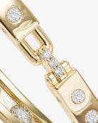 Ashley is thoughtfully designed with lock-inspired detailing and accented by a mix of oval and round bezel-set simulated diamonds for added dimension and shine. A seamless hinge closure ensures it slips on and off effortlessly while maintaining a sleek, secure fit. Polished and modern, it’s a statement piece that truly clicks into place.
