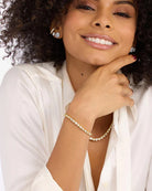 The Isla Tennis Bracelet shines with dazzling simulated diamonds, bringing a touch of vacation-ready glamour to any look. Effortless to wear and easy to stack, it’s a versatile piece designed for year-round sparkle.