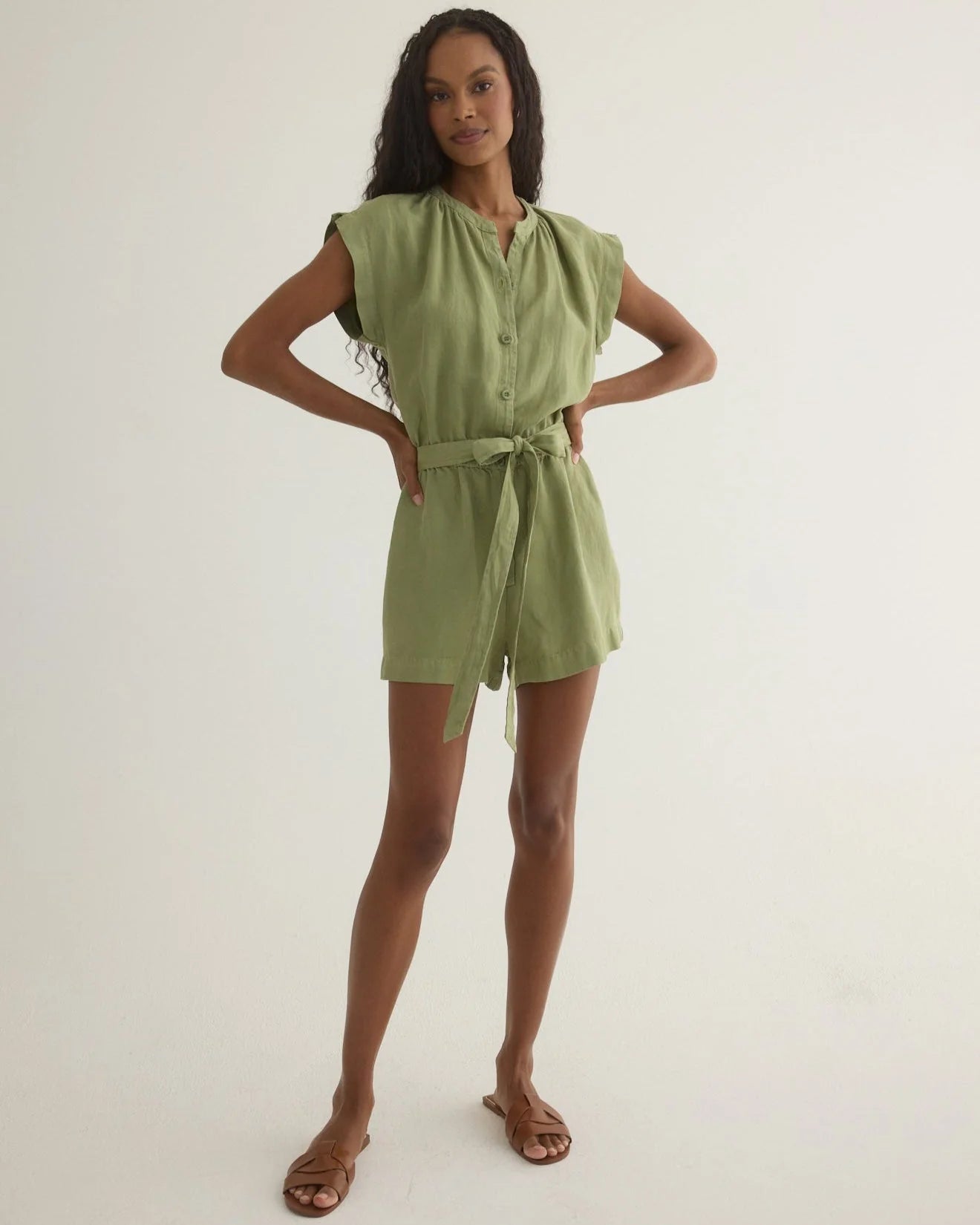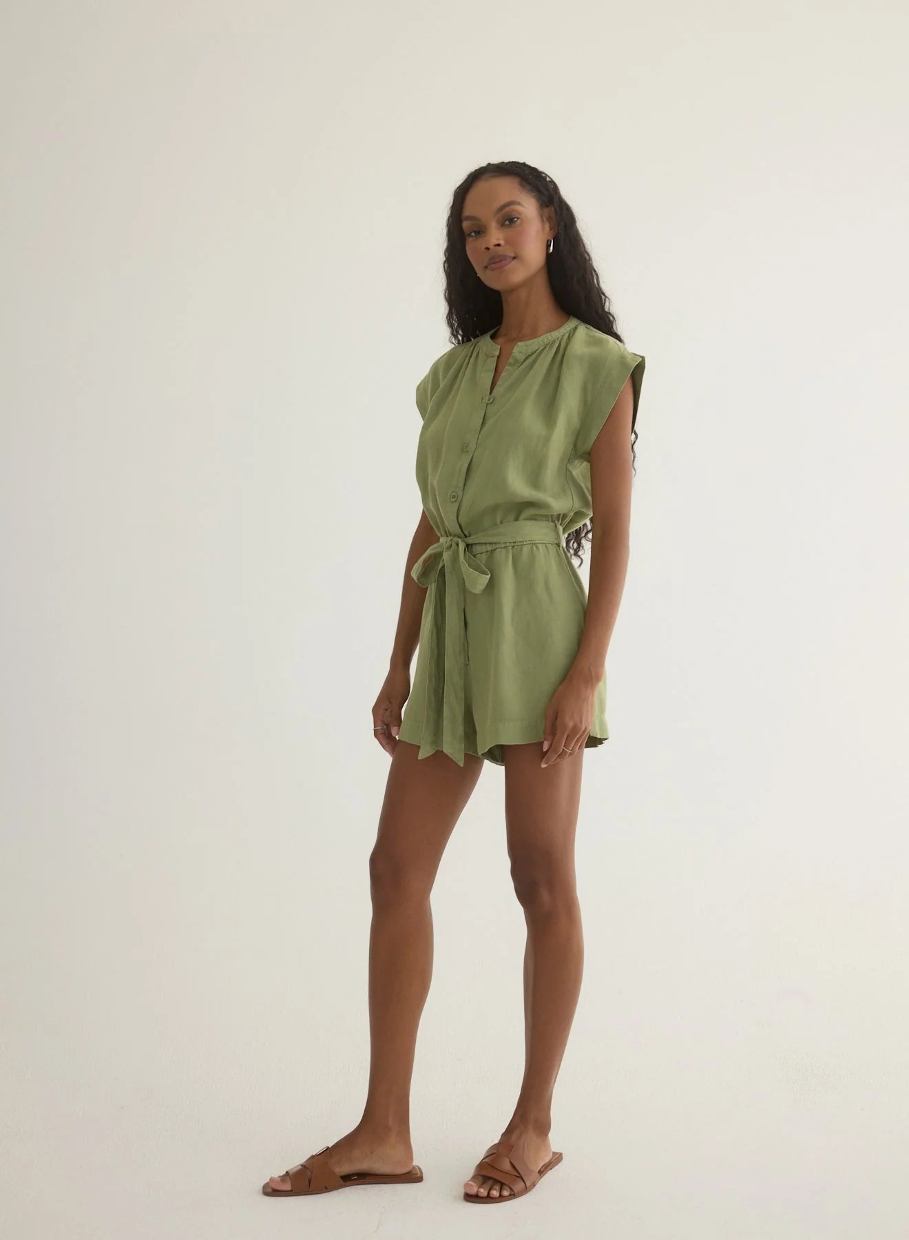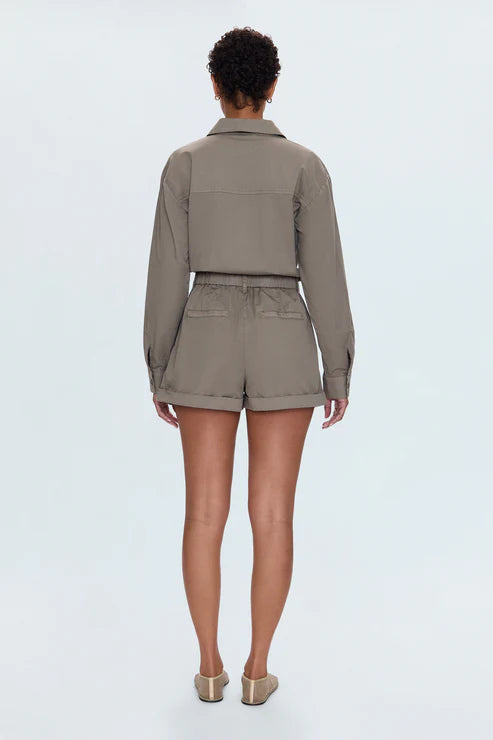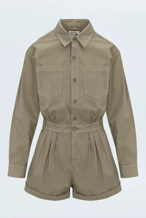Archie Pleated Romper in Soft Moss
