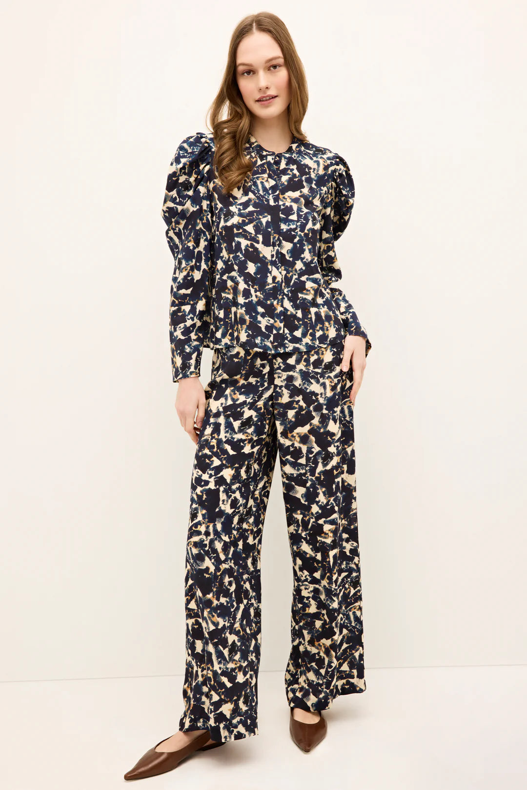 The Tyson Blouse commands attention with its dramatic gathered cowl sleeves, fitted forearms, and refined button-front placket. Crafted from soft silk in a moody mineral print, it strikes the perfect balance between fluidity and structure. Pair with the matching Beau Pant in Pyrite for an elevated, head-to-toe look.