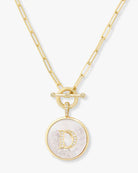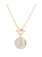 The Love Letters Medallion Necklace is a timeless piece of jewelry that radiates sophistication and charm. Available in 18k gold-plated or silver-plated finishes, this elegant necklace is perfect for everyday wear. The intricately crafted medallion features a captivating combination of Mother of Pearl and pavé stones, creating a striking visual appeal. Whether you're seeking a unique fashion accessory or a meaningful gift, the Love Letters Medallion Necklace is a perfect choice. Keep your loved ones close with this beautifully designed, high-quality pendant necklace.