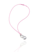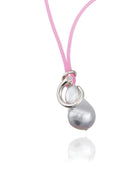 Our Seaside Souvenir necklaces blend high and low elements with effortless charm. An elegant freshwater pearl is embraced by a sculptural wave crafted from rhodium-plated brass. The pendant hangs playfully from bikini-hued rubber cording, perfectly capturing the carefree spirit of summer.