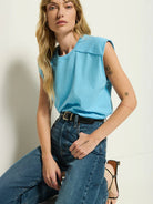 A fresh twist on a timeless staple, the Perry Tank is our elevated take on the classic boxy silhouette. Crafted from organic cotton knit, it features a relaxed crew neckline, shoulder piping, a yoked bodice, and a subtly oversized fit. Shown here in Day Dream.