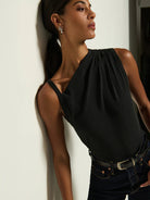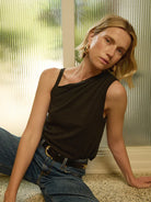 Effortlessly chic, the Quin Tank is your go-to for modern minimalism. Crafted from soft Pima Cotton Jersey, it features an asymmetrical neckline with a single shoulder strap and a subtly gathered bodice for a flattering finish. Shown here in Jet Black.