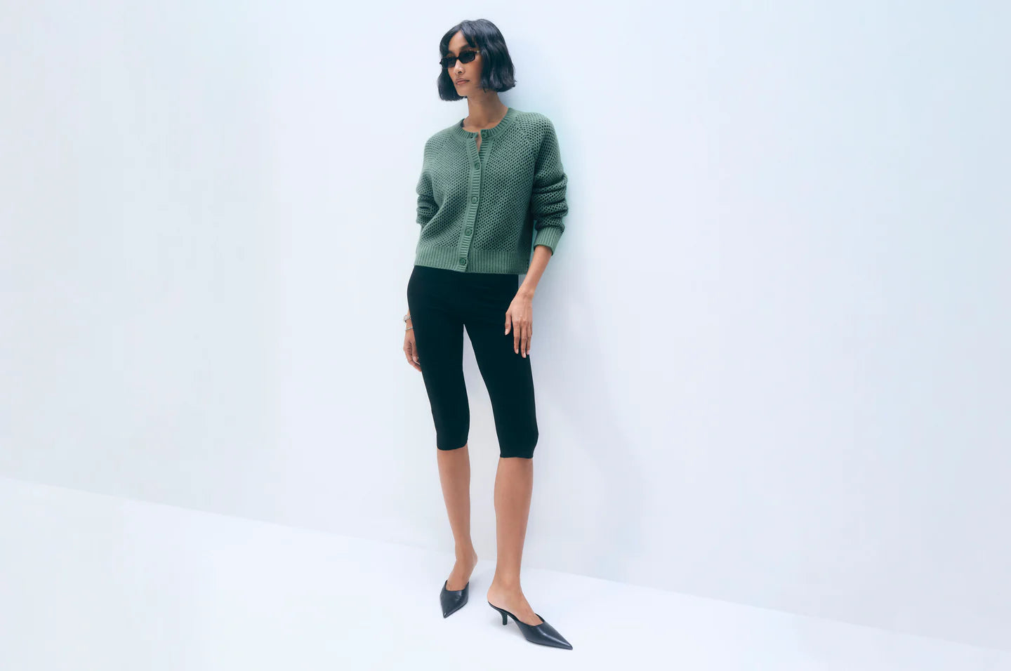 Cashmere Mesh Cardigan in Retro Green/Ivy Green