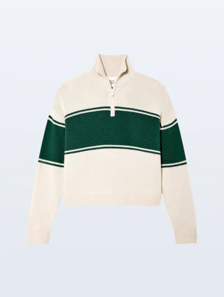 Cashmere Blend Half Zip Hoodie in Ivy Green/Ivory