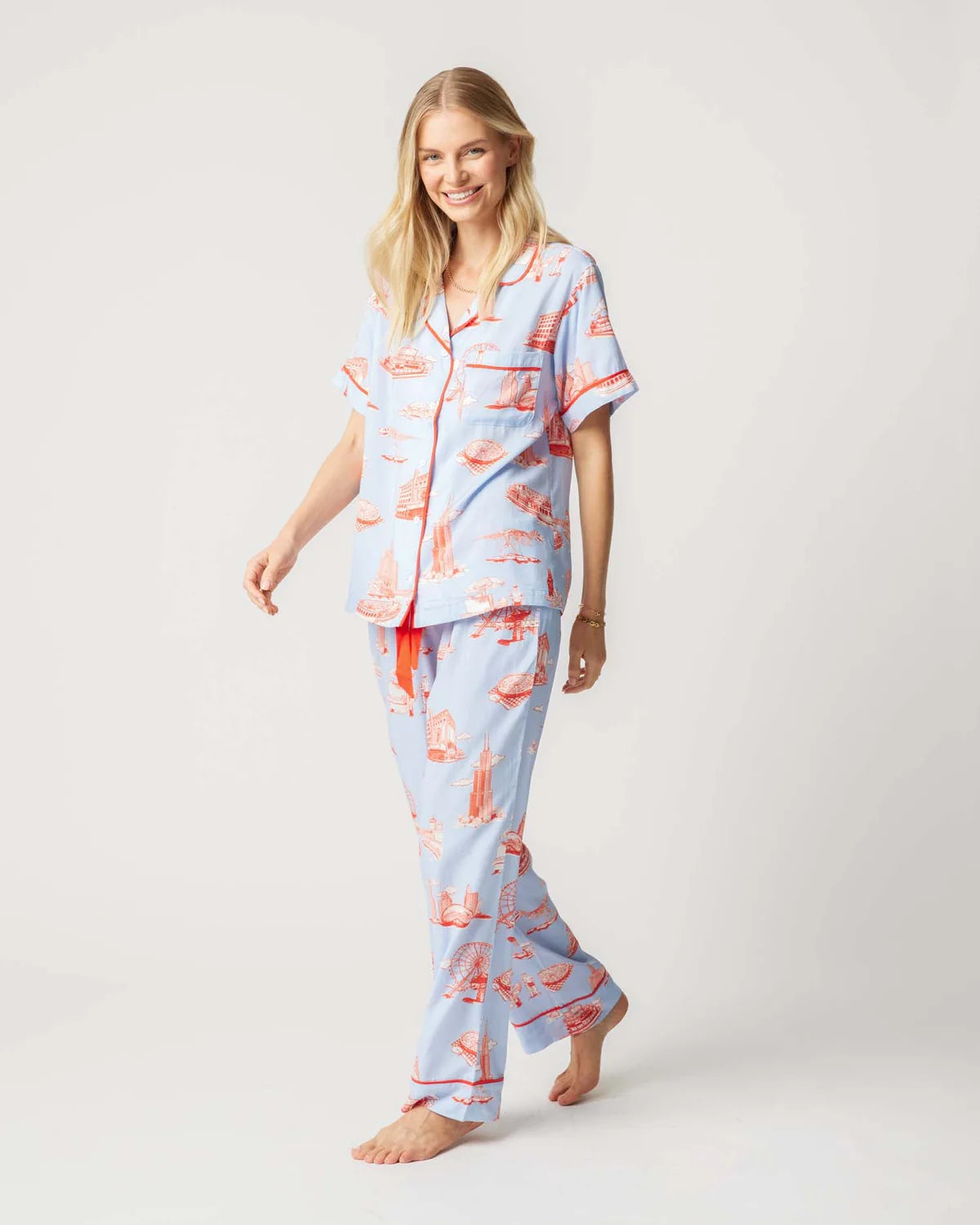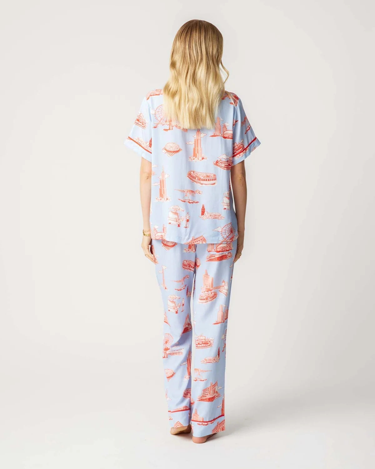 Chicago Toile Pajama Pants Set in Light Blue Red