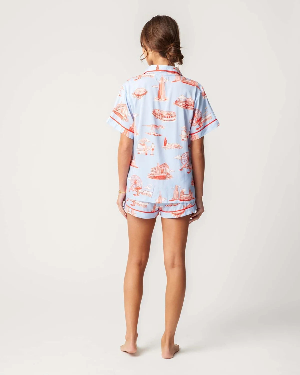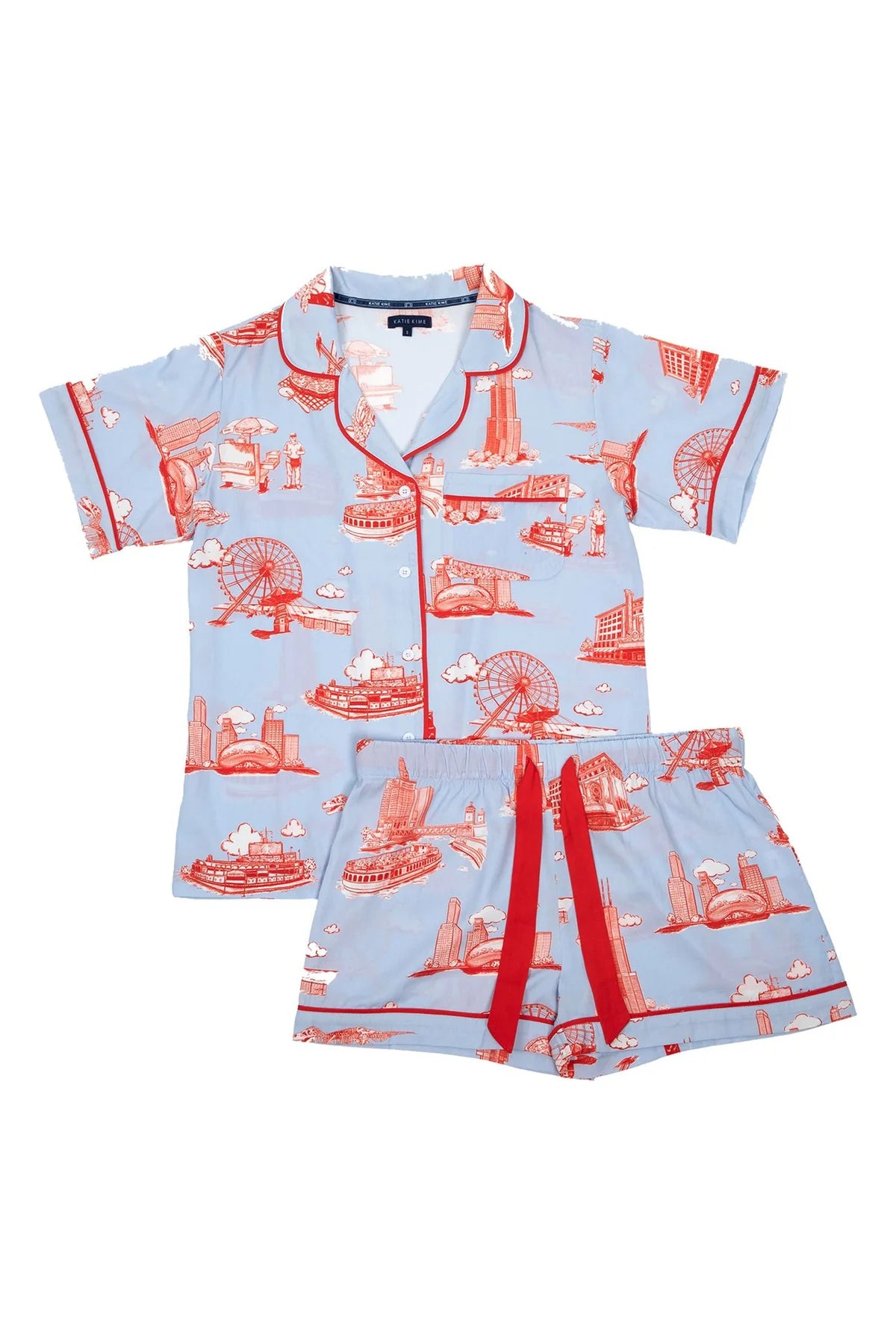 Chicago Toile Pajama Shorts Set in Light Blue Red