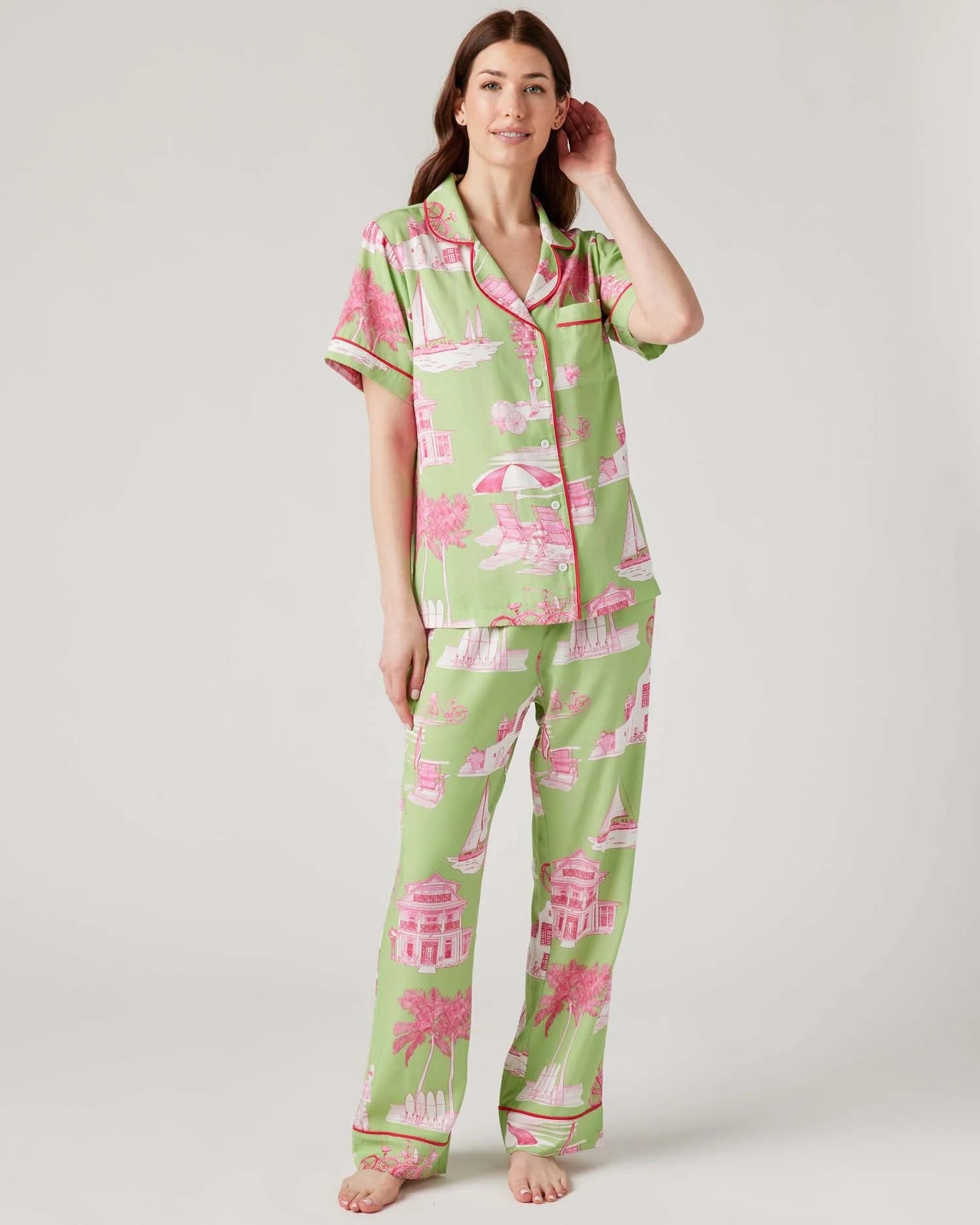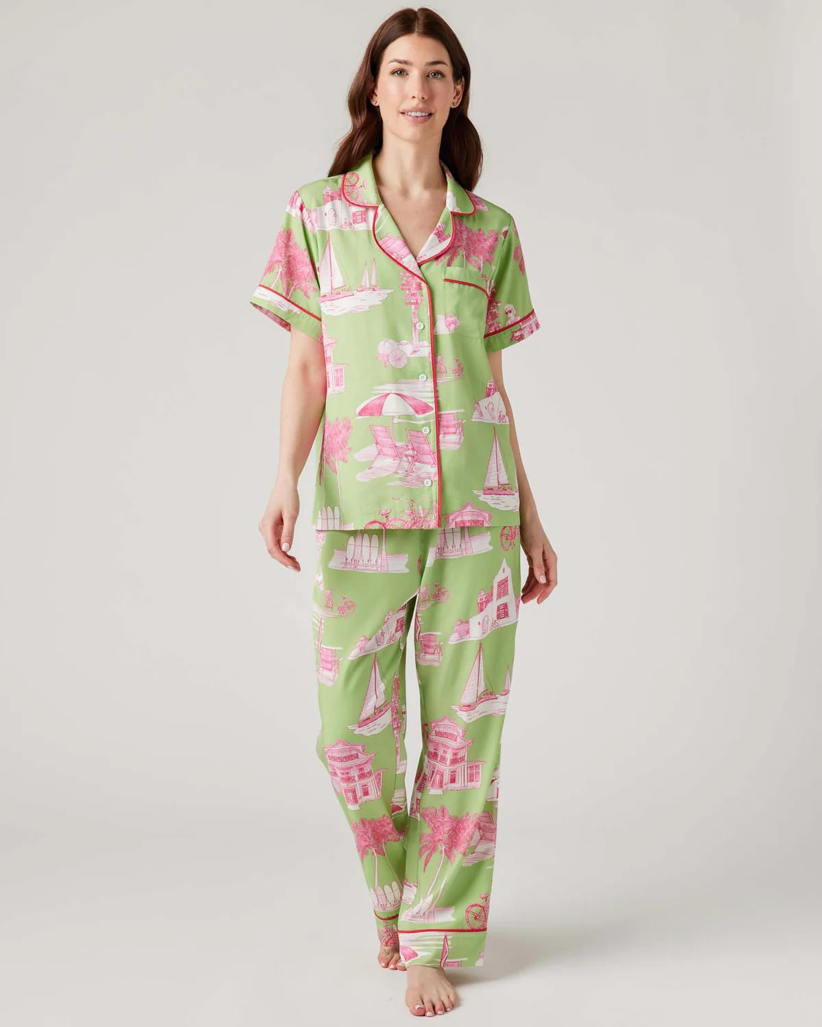 Florida Toile Pajama Pants Set in Green Pink