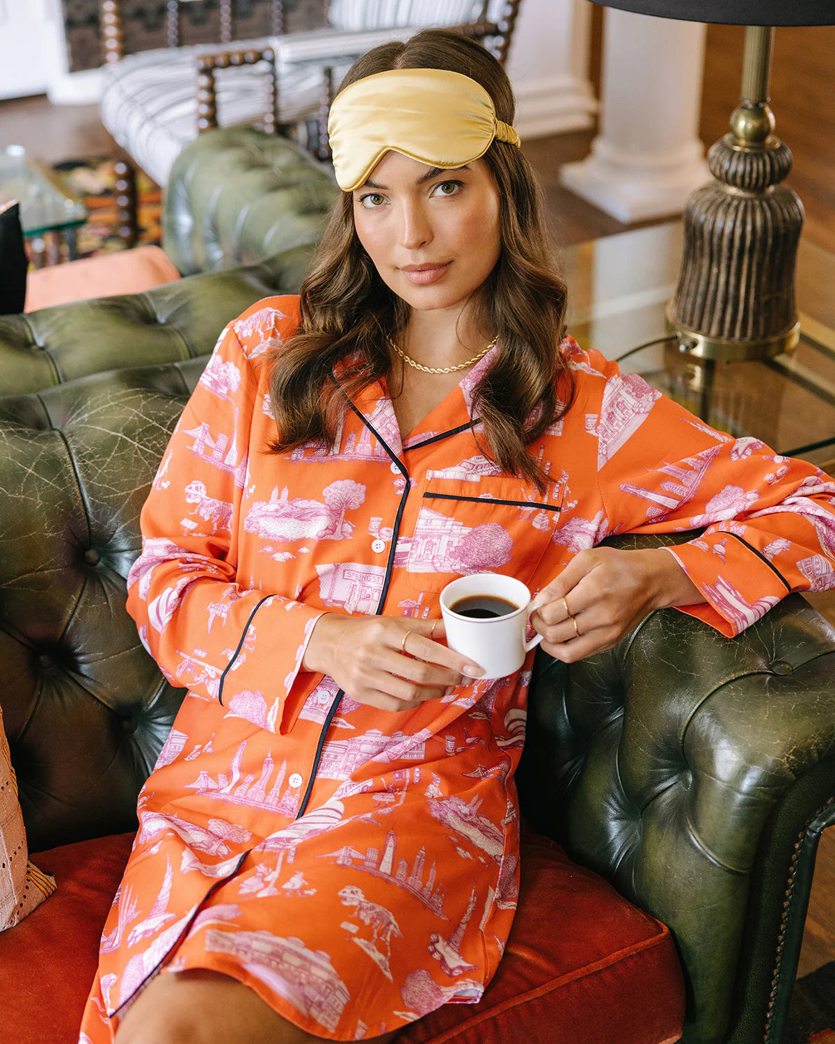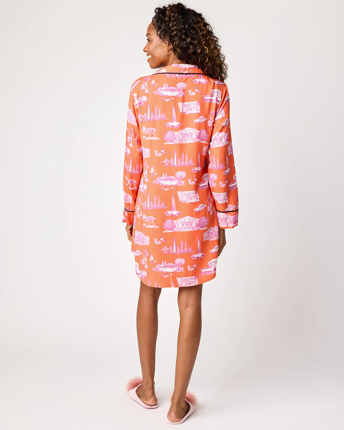 New York Toile Sleep Shirt in Orange Magenta