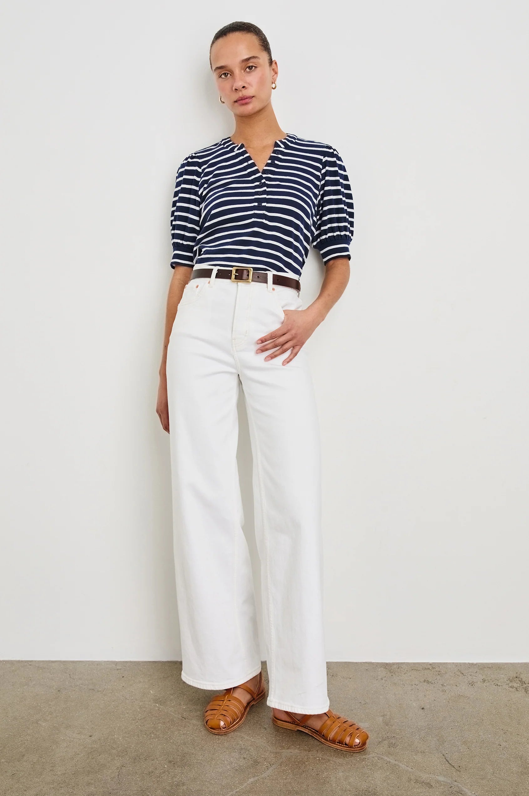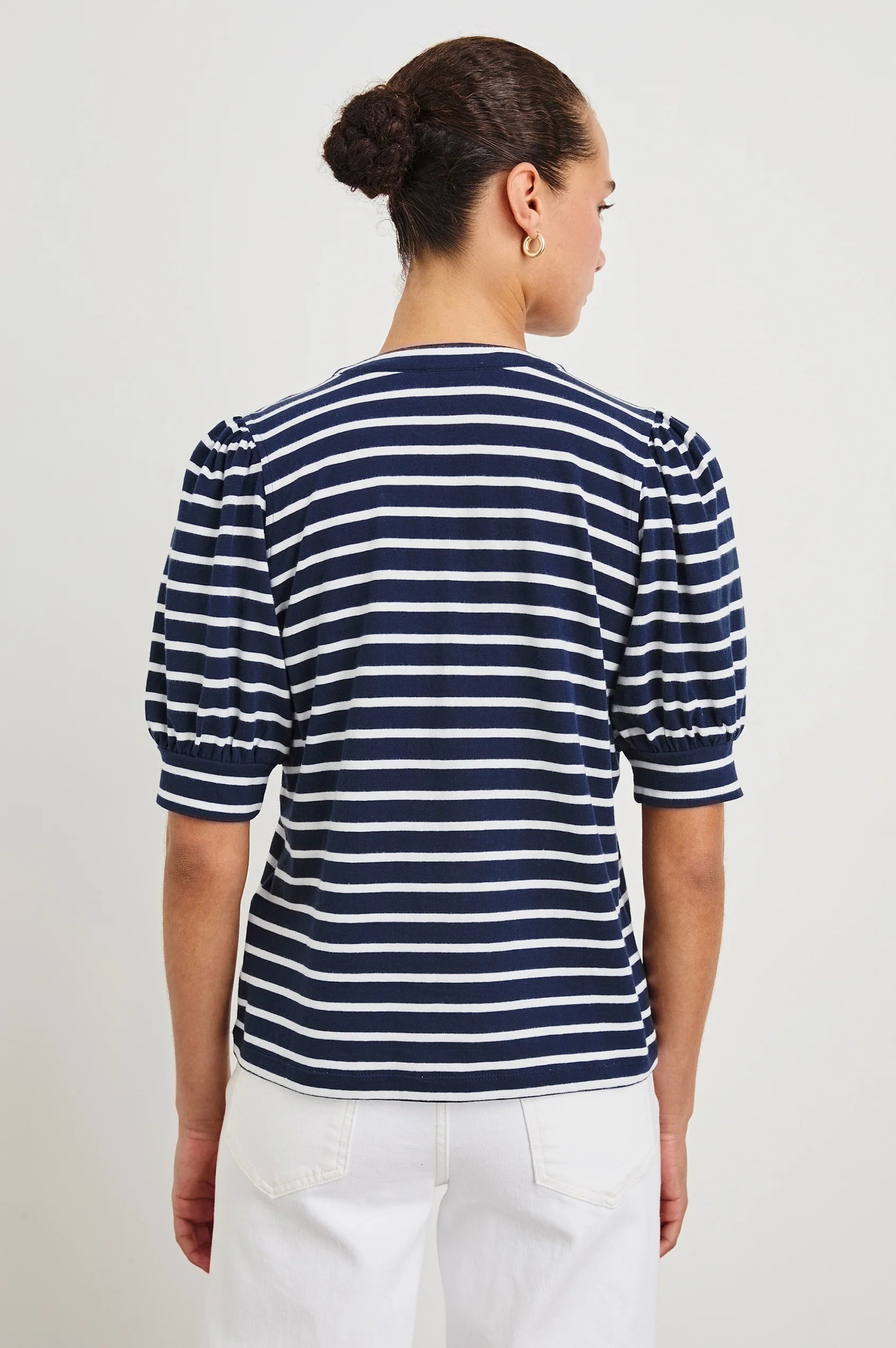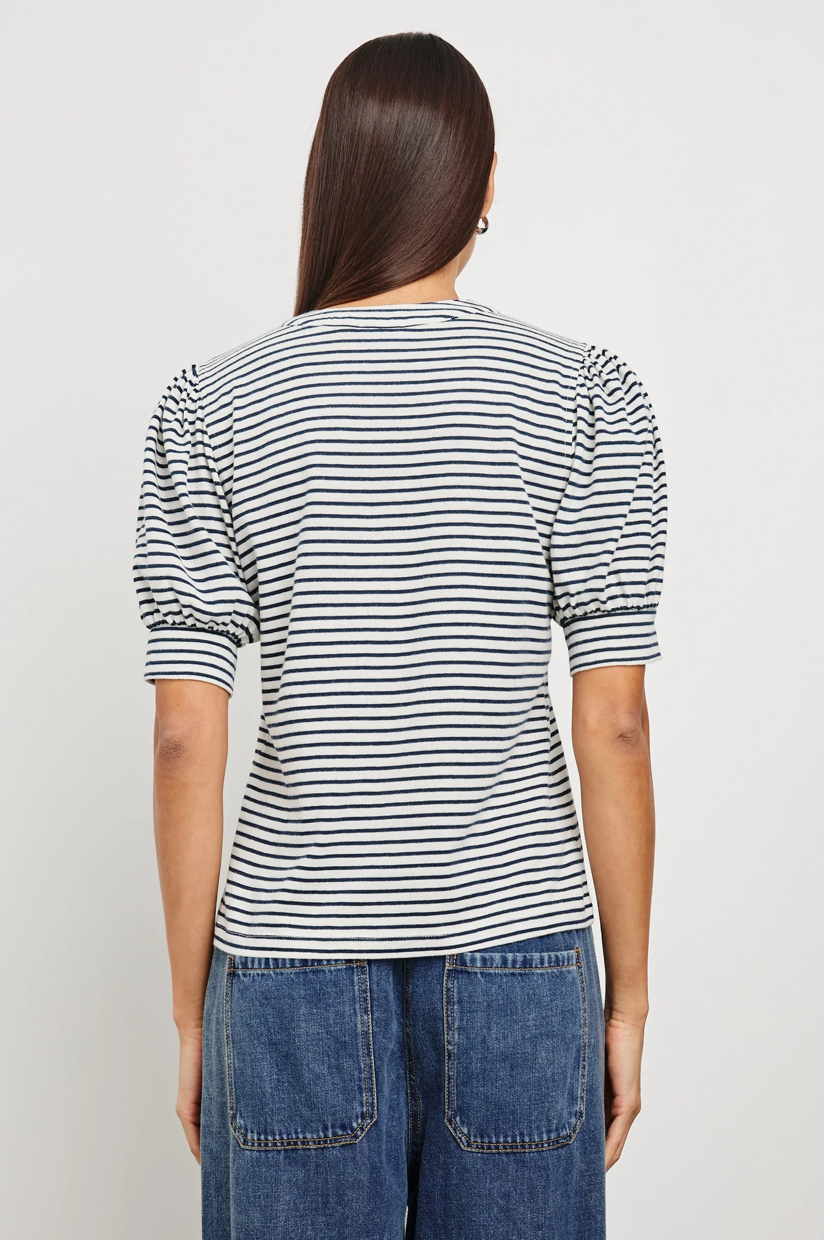 Jewel Top in Ivory Navy Micro Stripe