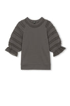The Aggy Sweatshirt is a luxe take on loungewear, crafted from soft French terry with a relaxed fit. Inset cotton lace and ruffled sleeves add a feminine twist, making it the perfect blend of comfort and charm.