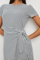 Everyday ease meets refined style in the Edie Dress. Crafted from sueded cotton jersey, it features short sleeves, a classic crew neckline, and an adjustable wrap tie at the waist for a flattering, personalized fit.