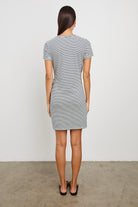 Edie Dress in Ivory Navy Micro Stripe