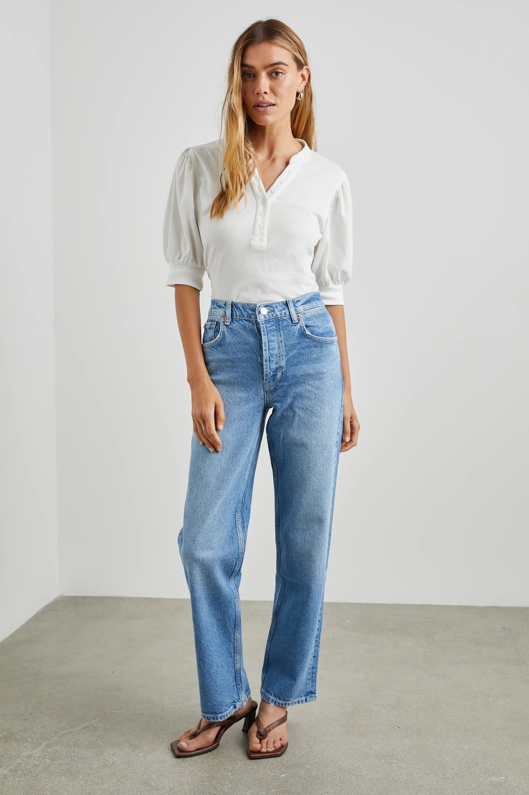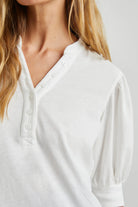 A staple with standout style. The Jewel tee features billowy short sleeves and a quarter-length button placket, all crafted from vintage cotton jersey for that perfectly broken-in feel. It’s a not-so-basic basic you’ll reach for again and again.