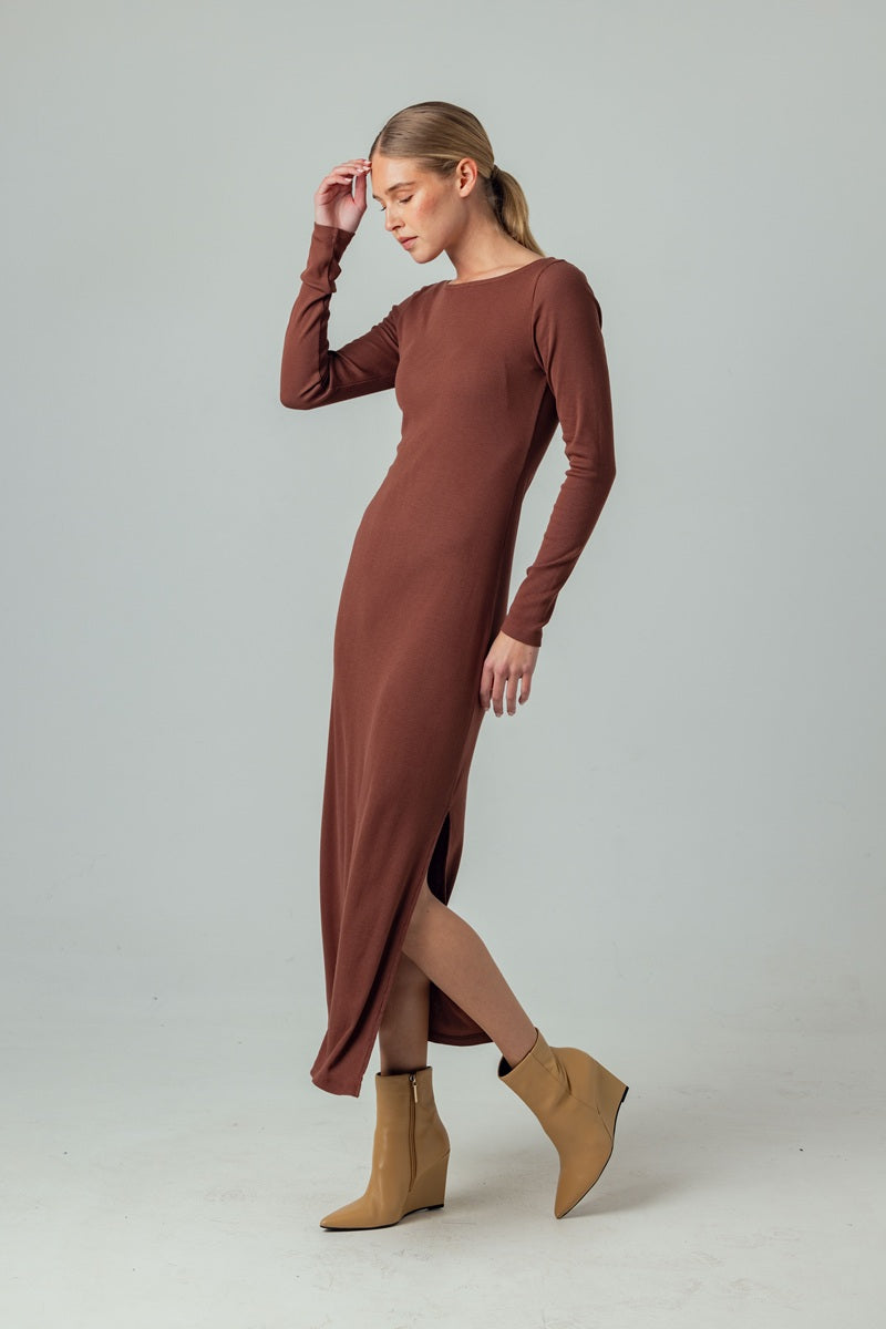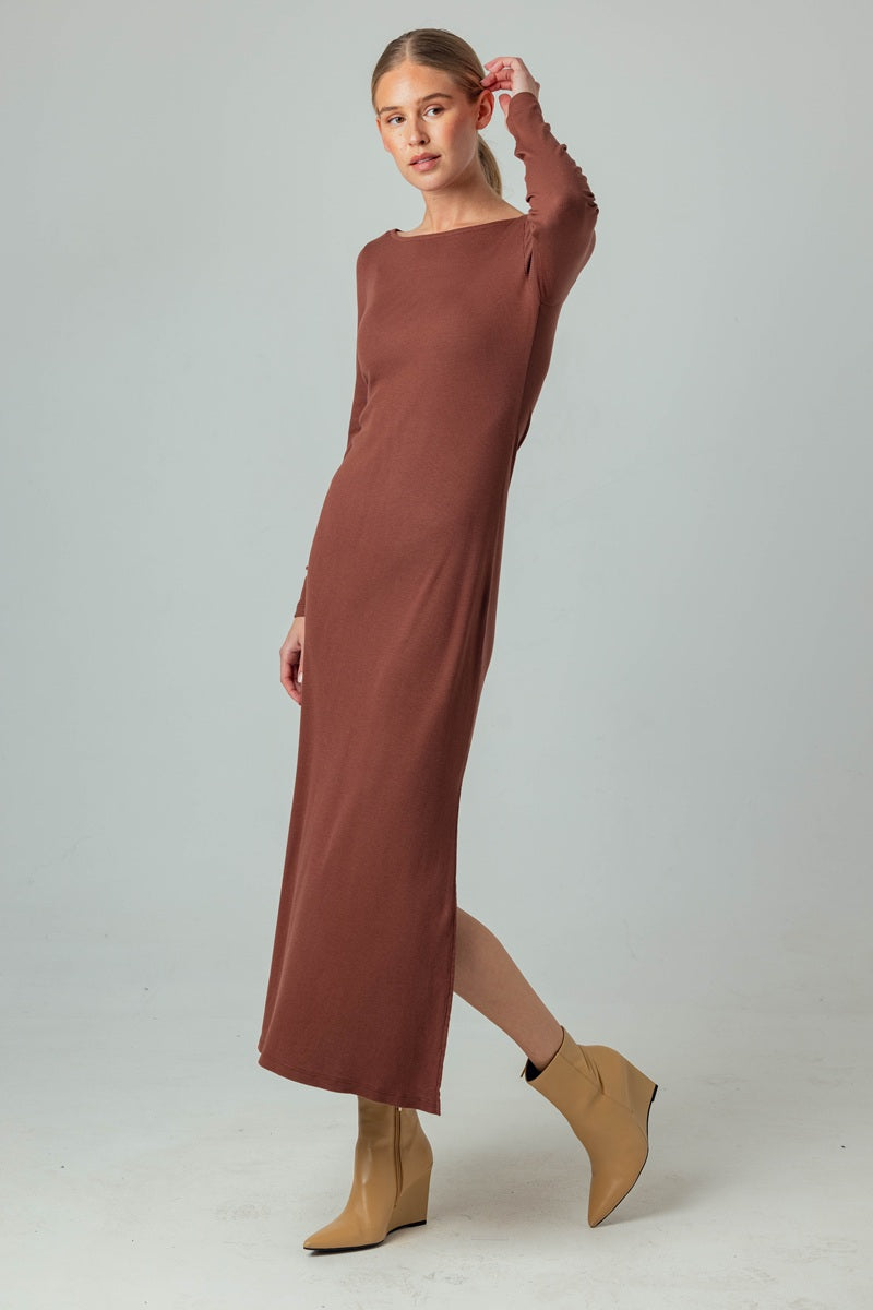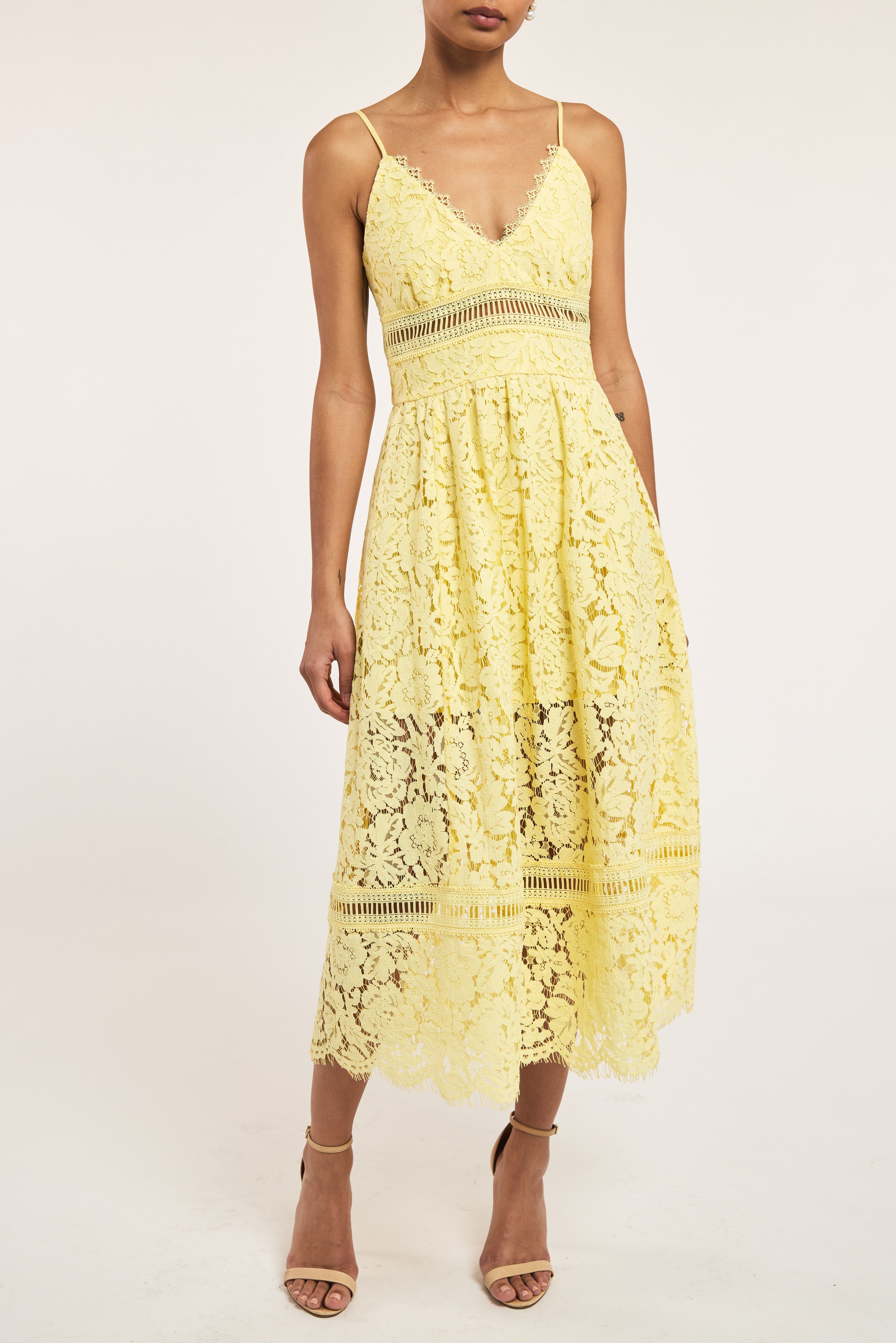 Crocheted Trim V-Neck Midi Dress Dune Brown