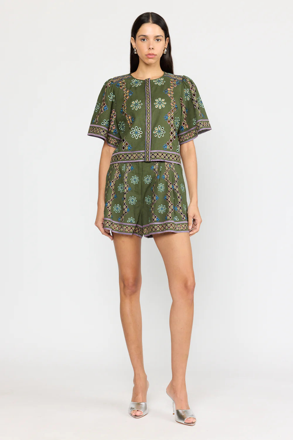 Amy Crystal Shorts in White/Silver