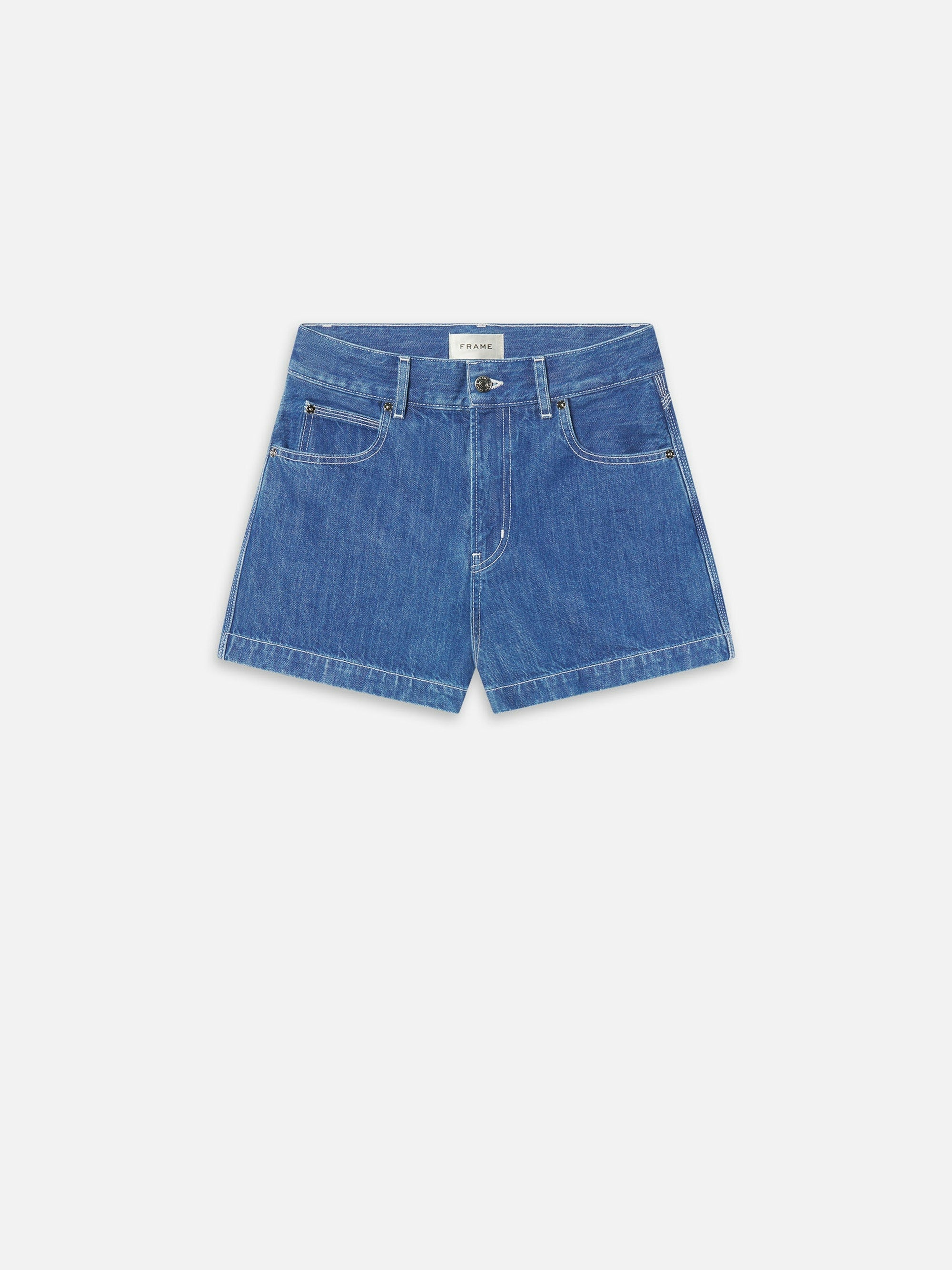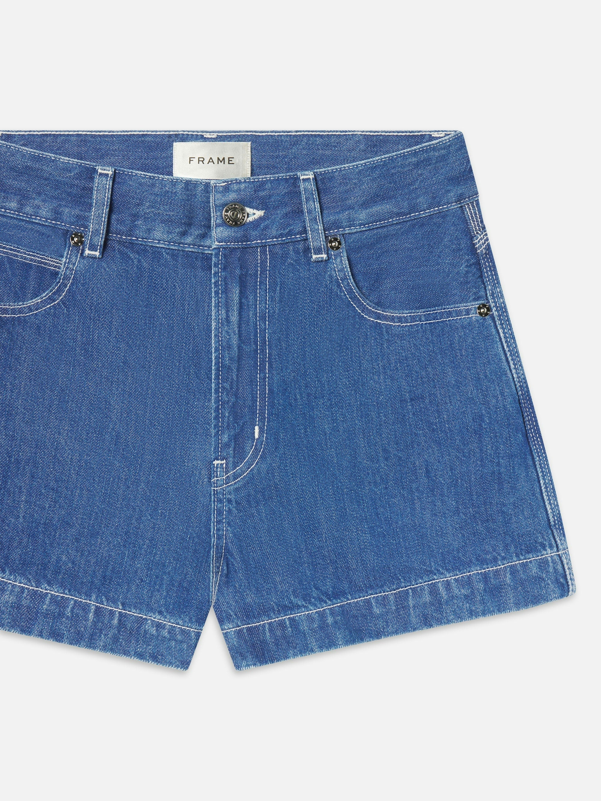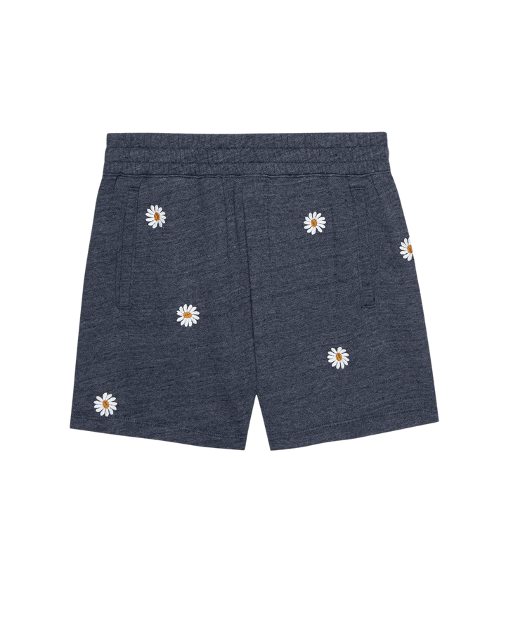 The Victory Short w/ Daisy Embroidery in Heathered Vintage Blue
